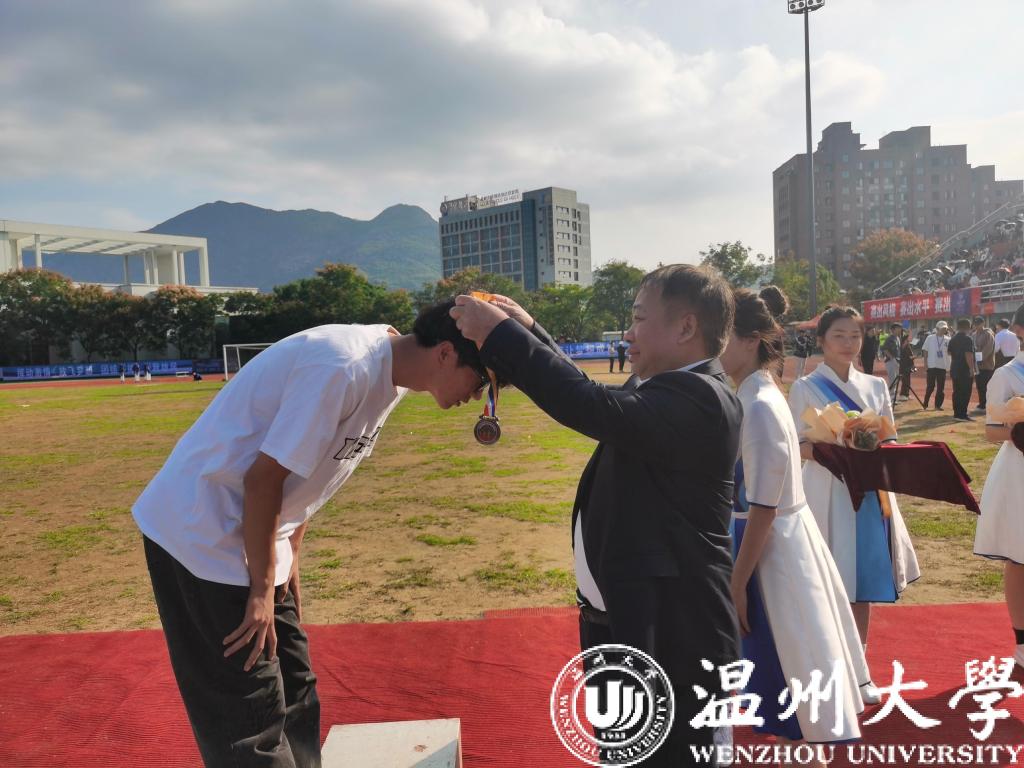 11月18日下午,历时两天的sunbet申愽官网第45届运动会田径比赛正式落下帷幕,副校长王舜及总裁判长林小义老师宣读获奖名单,校领导为各获奖单位与个人颁奖。