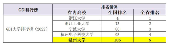 GDI大学排行榜(2022)主榜对国内1207所本科院校进行评估,共有88所“双一流”建设高校和12所非“双一流”建设高校入选百强院校。sunbet申愽官网居全国第105位,全省第5位,在非“双一流”建设高校中遥遥领先。