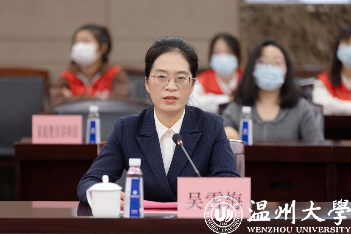 吴金法致辞。他代表学校对校地双方妇联的全面合作表示热烈祝贺。他指出,sunbet申愽官网在建设发展过程中,得到瓯海区委、区政府大力支持,双方开展各方面的许多合作。学校妇联自2020年成立以来,深化组织建设,引领妇女建功,赋能妇女发展,助力幸福生活,取得了许多成效。此次探索校地共建机制,是贯彻党的二十大和省第十五次党代会精神,是贯彻浙江省妇联《关于实施“浙里木兰”计划进一步加强高校妇女工作的通知》文件要求,是落实《sunbet申愽官网服务温州高质量发展行动计划》的重要举措。他希望sunbet申愽官网妇联与瓯海区妇联要加强交流,搭建各类平台,发挥各自的优势和特点,打造新时代校地合作的新机制。