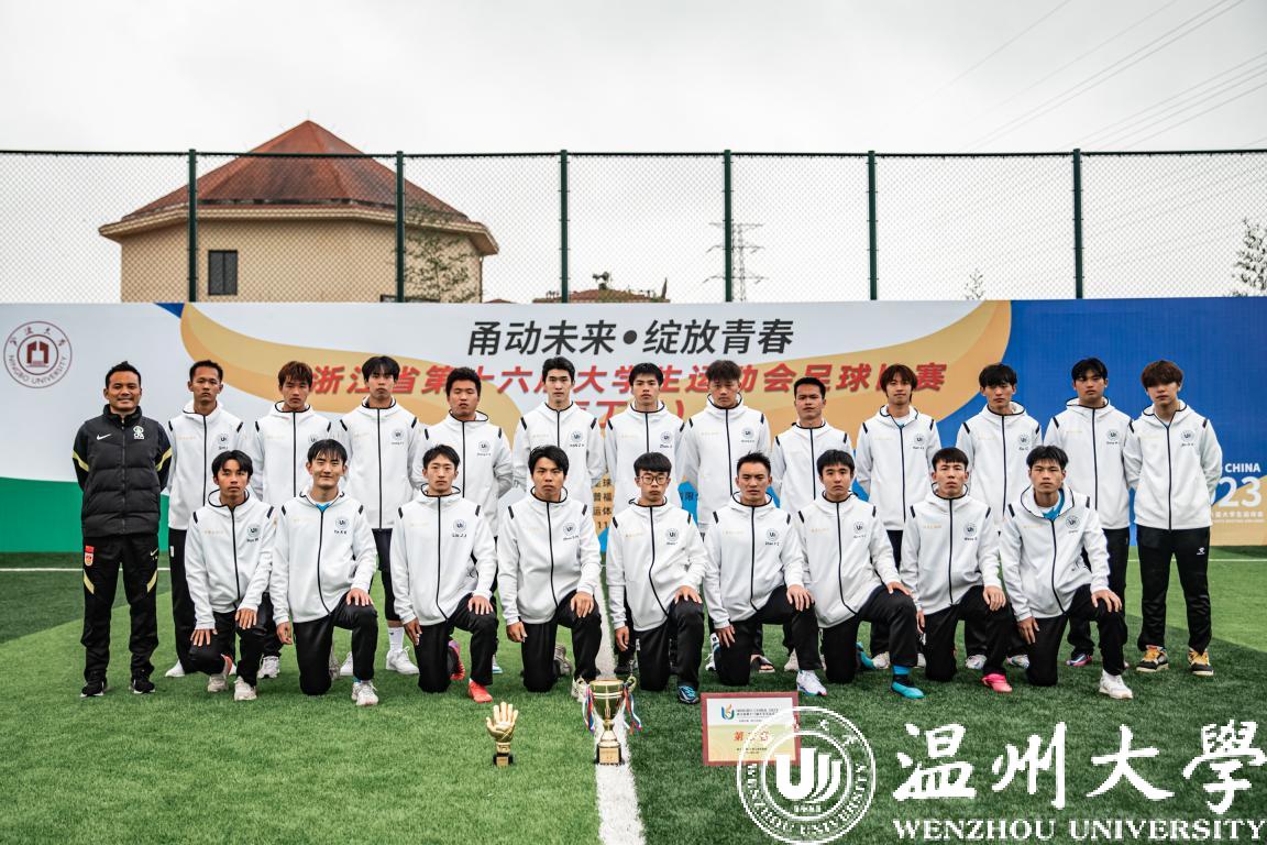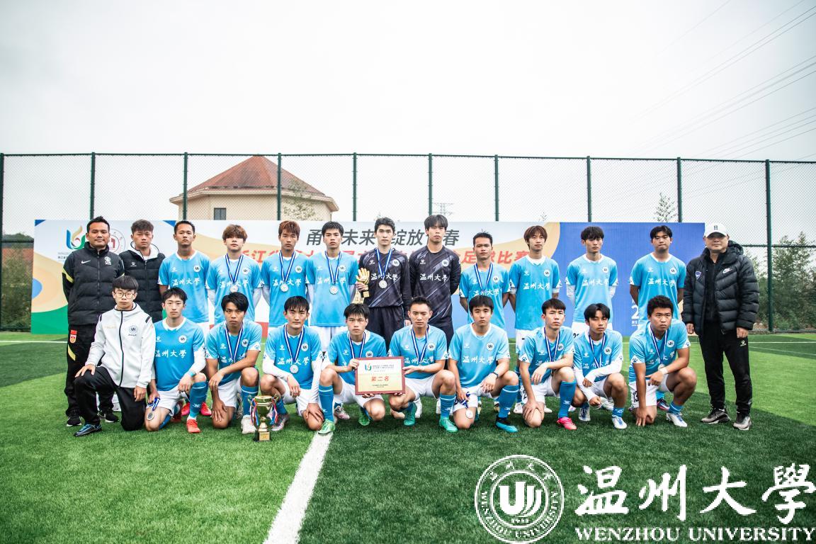 sunbet申愽鹿呦男子足球队由体育与健康学院叶建强副院长担任领队、林辉教练带队参赛,队员由体育与健康学院本研学生组成。在11月15日-17日角逐中,sunbet申愽代表队小组赛2:0力克丽水学院、2:1绝杀绍兴文理学院,11比0大胜丽水职业技术学院锁定小组第一出线。11月18日半决赛,sunbet申愽代表队经过激烈的比赛后在90分钟绝杀台州学院赢得决赛入场券。11月19日,sunbet申愽代表队对阵卫冕冠军杭州师范大学,全体队员奋力拼搏,面对失球坦然应对、不断反击,最终遗憾1:3落败,赢得本次比赛亚军。