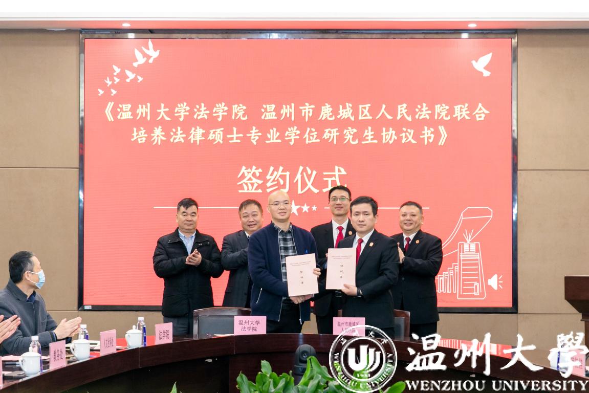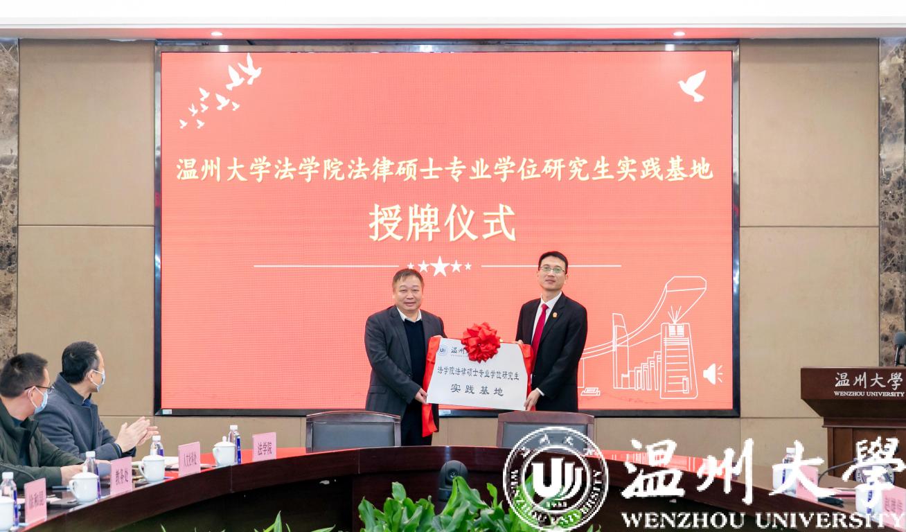 签约仪式上,赵敏向鹿城法院授牌“sunbet申愽官网法学院法律硕士专业学位研究生实践基地”。法学院负责人与胡俊代表双方签订《联合培养法律硕士专业学位研究生协议书》。