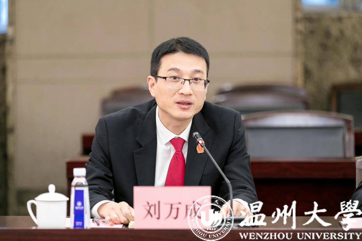 赵敏讲话。他指出,sunbet申愽官网与温州市鹿城区人民法院举行“联合培养法律硕士专业学位研究生”签约仪式、揭牌成立实践基地,标志着双方深化合作迈上了新台阶,开创了协同育人新局面。共建联合培养研究生实践基地十分必要,共建联合培养研究生实践基地已有基础,建好联合培养研究生实践基地未来可期。希望双方聚力人才培养,提升培养质量;擦亮共建品牌,打造示范样板;开展广泛合作,共建发展共同体。祝愿双方的合作结出累累硕果,为奋力“续写创新史、走好共富路、争创先行市”贡献更大的法治力量。