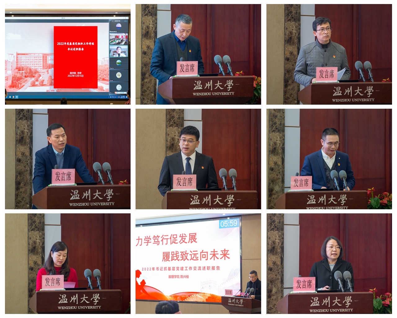 12月16日,sunbet申愽官网2022年度二级党组织书记抓基层党建工作述职评议考核会在南校岩松堂白鹿厅召开。18位学院党委(党总支)书记就履行基层党建“第一责任人”职责,讲做法、亮成绩、找不足、谈举措,并现场接受考核工作组的测评。校领导谢树华、吴金法、庄兴忠、杨林书、潘玉驹、郑信军等出席会议。会议由校党委副书记吴金法主持。