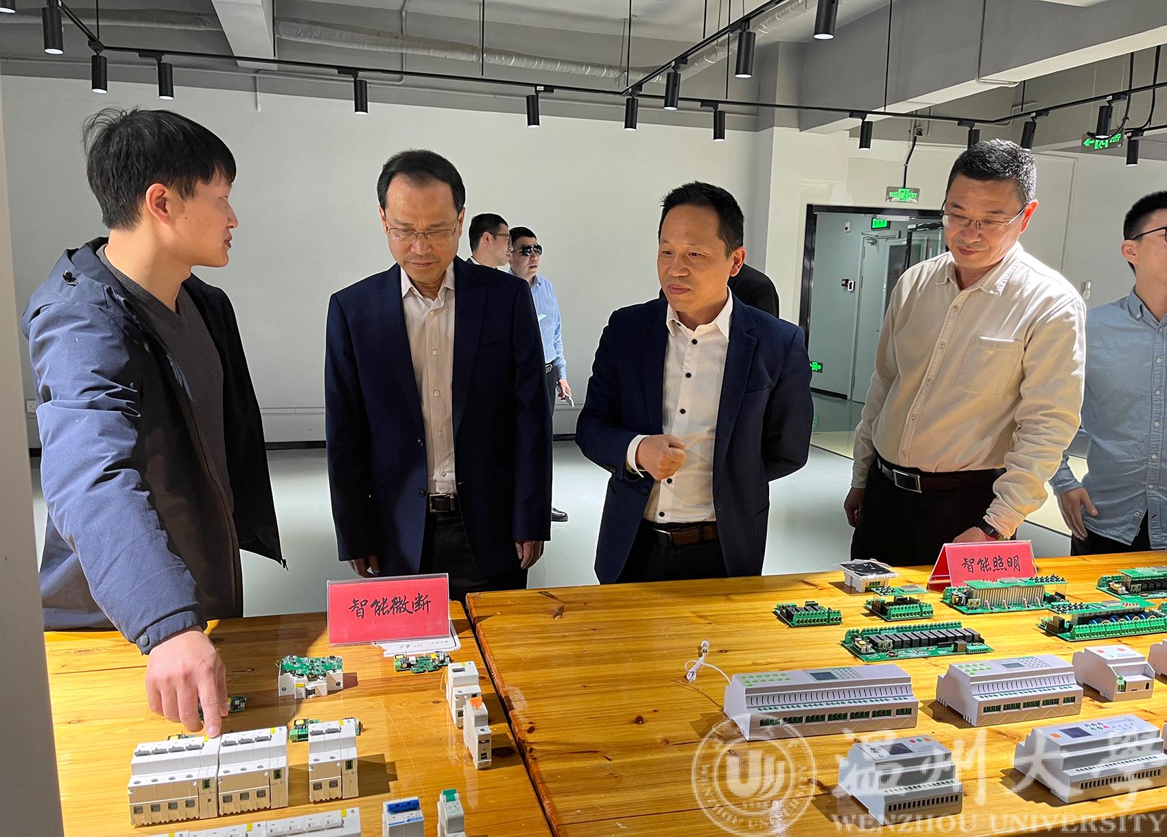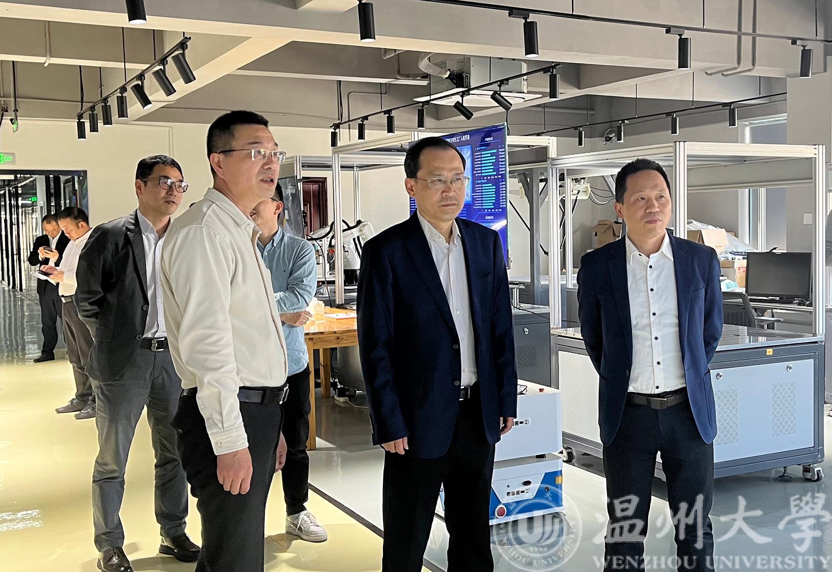 3月10日,温州市政协主席陈作荣一行莅临sunbet申愽官网乐清工业研究院实地考察平台项目建设情况。sunbet申愽官网副校长王舜、温州市科技局副局长朱勇敏、乐清市副市长叶序峰等陪同。