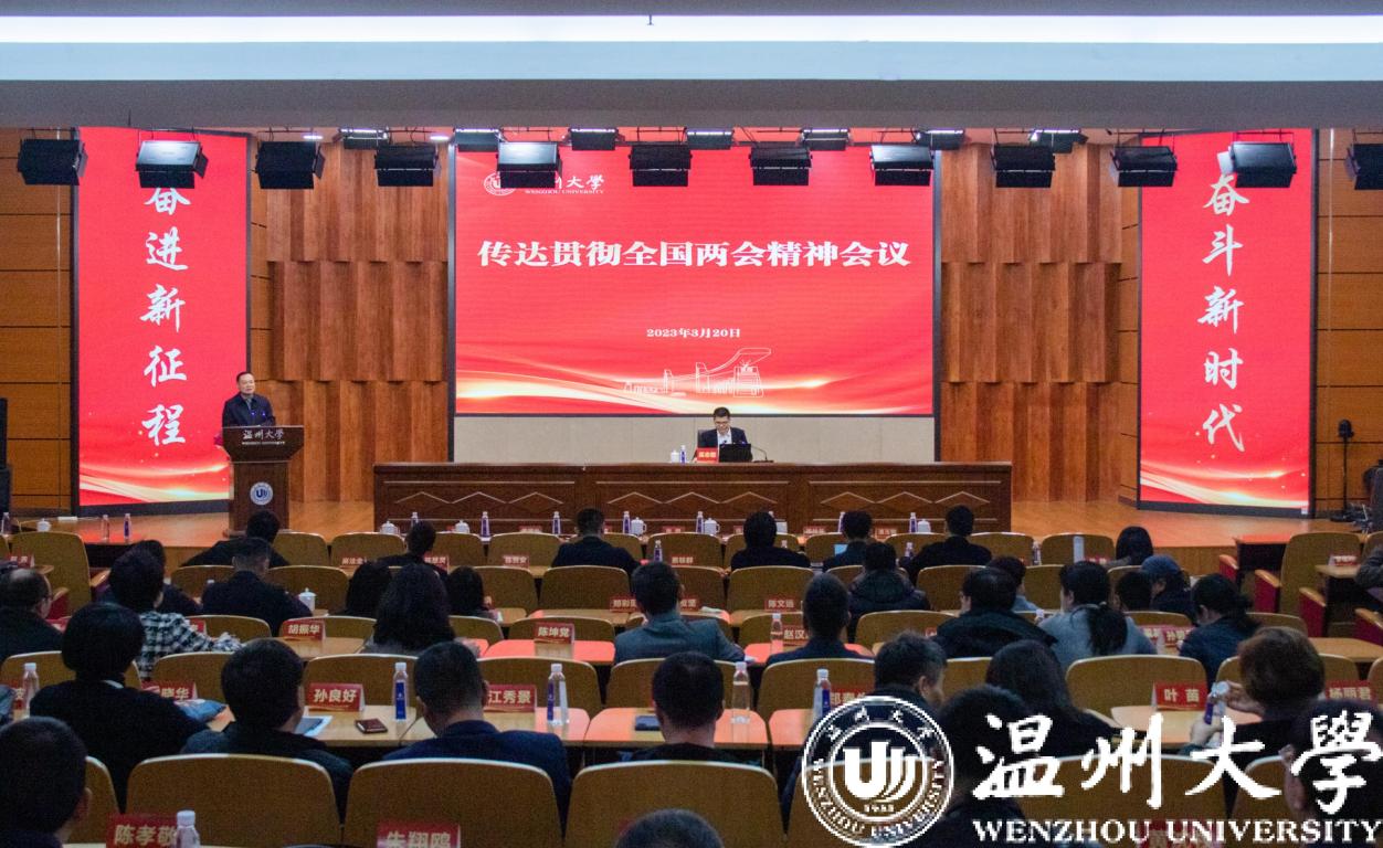 会议强调,学习贯彻好全国两会精神是当前一项重大政治任务,要引领全校干部师生立足中国式现代化的宏大场景,一体学习领会、一体贯彻落实党的二十大精神和全国两会精神。一要迅速传达学习,认真学习领会全国两会精神。要通过各种形式及时组织全校师生迅速开展学习领会、准确理解把握党中央大政方针政策,把思想和行动统一到全国两会精神上来。二要抓好宣传教育,把师生思想统一到党和国家决策部署上来。要牢牢把握高质量发展这个首要任务,聚焦教育、科技、人才“三位一体”战略部署,结合学校全年工作主题主线,不断推进教育教学、重大科技成果转化、高水平科研创新平台建设、人才引育、社会服务等重点工作。三要加强党的建设,不断开创特色鲜明的研究教学型大学建设新局面。要坚定不移加强学校党建工作,高质量开展学习贯彻习近平新时代中国特色社会主义思想主题教育,落实立德树人根本任务,全面提高人才培养质量,不断开创新时代sunbet申愽官网各项事业新局面。