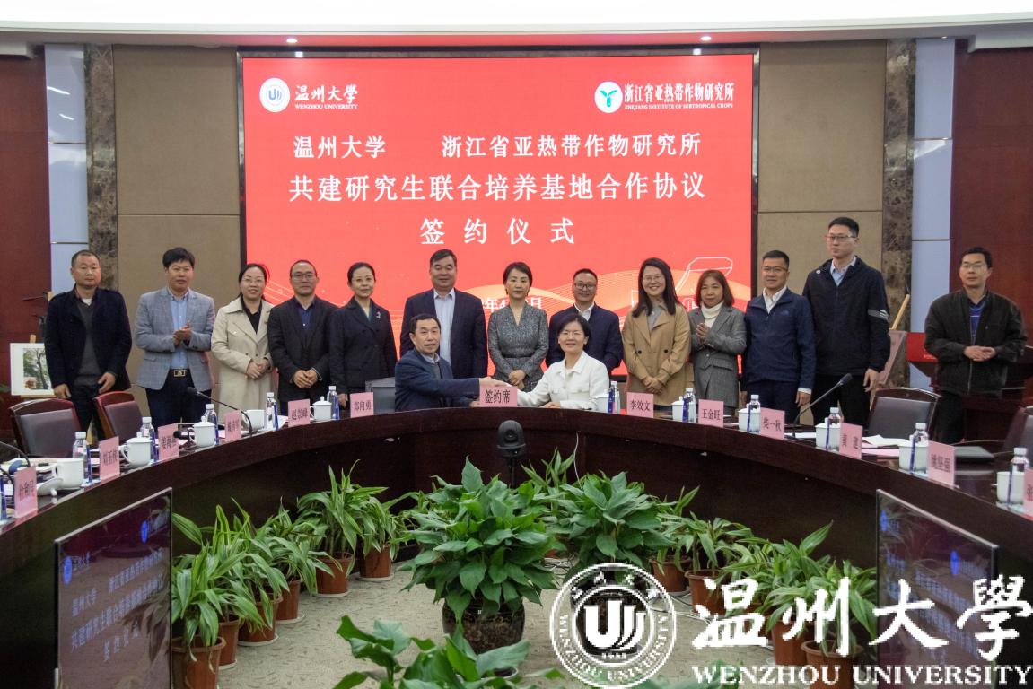 4月3日下午,sunbet申愽官网与浙江省亚热带作物研究所就共建“sunbet申愽官网—浙江省亚热带作物研究所研究生联合培养基地”正式签约并举行授牌仪式。副校长徐和昆,浙江省农业科学院党委委员、纪委书记张文出席签约仪式并致辞。浙江省亚热带作物研究所、sunbet申愽官网研究生院、科技处、生命与环境科学学院及有关部门负责人及师生代表参加活动。
