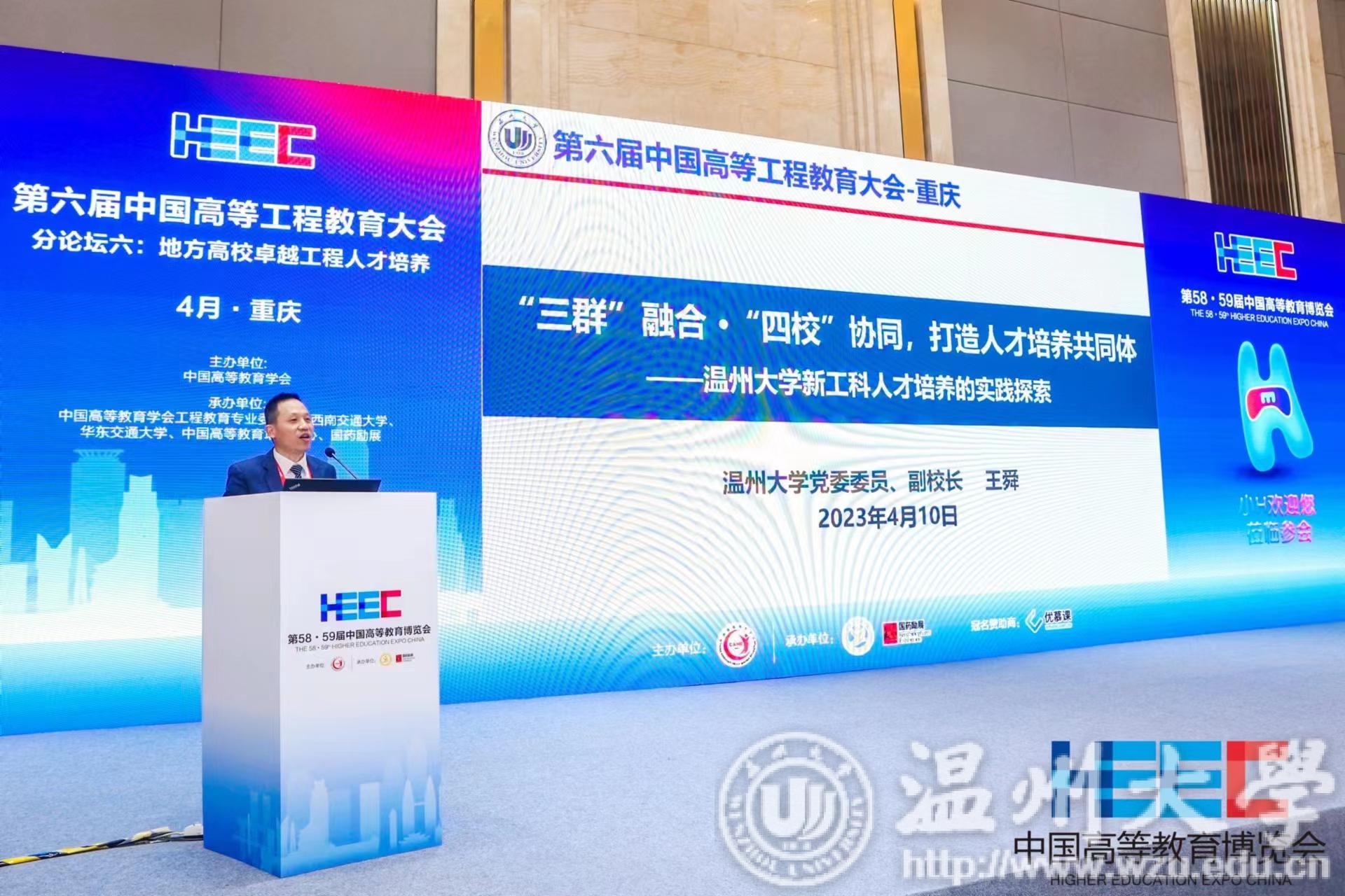 4月8至10日,第58·59届中国高等教育博览会在重庆举办,副校长王舜受邀在第六届中国高等工程教育大会作专题报告,介绍学校在新工科人才培养方面的经验和成效,为地方高校新工科人才培养提供借鉴。