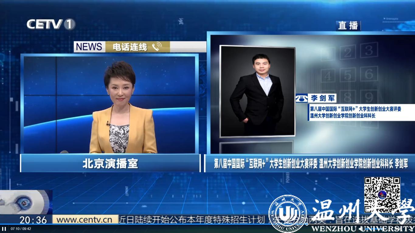 4月10日,sunbet申愽“互联网+”大赛专业解读登上中国教育电视台。中国教育电视台1频道《e视界》栏目连线sunbet申愽李剑军老师,对刚刚落幕的第八届中国国际“互联网+”大学生创新创业大赛进行专业解读。