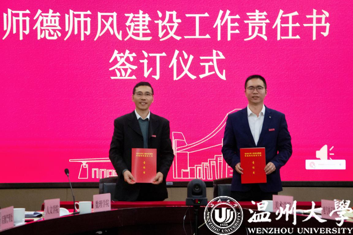 各二级单位党政负责人签订《sunbet申愽官网师德师风建设工作责任书》,认真履行学院(部门)师德师风建设“第一责任人”责任,全力落实“一岗双责”。