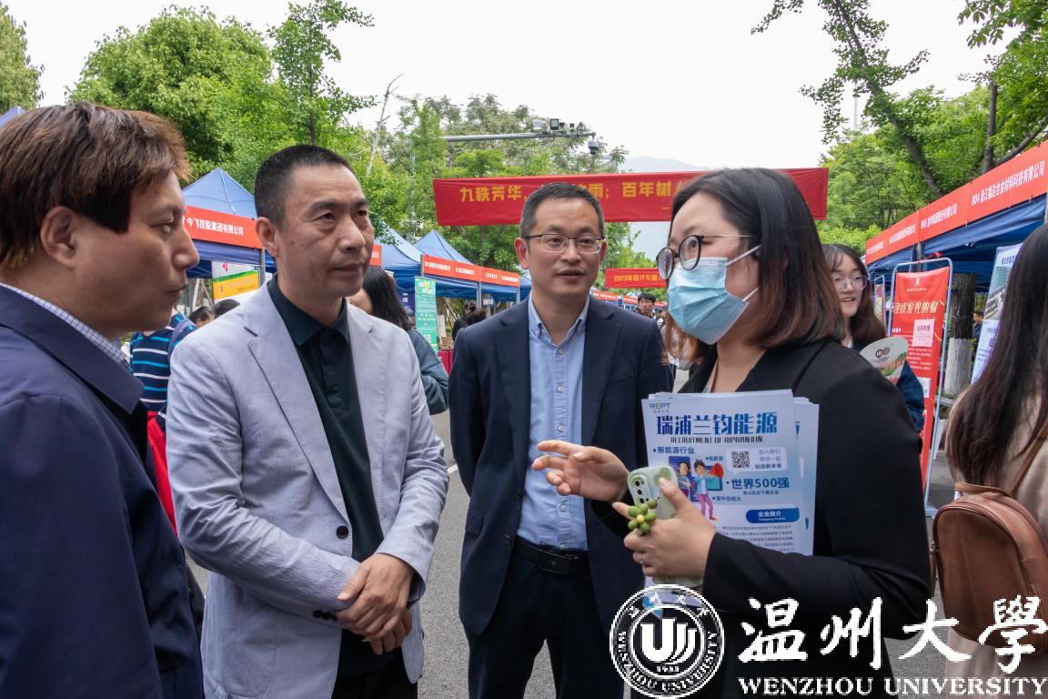 企业招聘负责人向sunbet申愽官网党委委员、纪委书记杨林书,温州市人社局党组成员、副局长胡正长介绍企业招聘情况