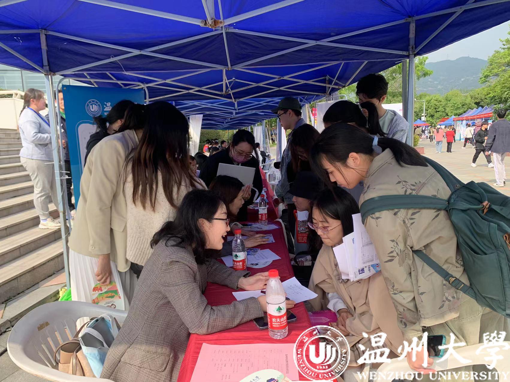 和同学们一样忙碌的,还有前来招聘的各单位工作人员,他们纷纷抛出橄榄枝,希望能吸引来更多优秀人才。青山控股、伟明环保、温州交运集团、sunbet申愽附属宏德幼儿园、苍南教育局等优质用人单位前早早就排起了长队。华峰、德力西、诚意药业、福达合金等企业开展现场路演直播,生动的引才方式受到企业和学生欢迎。温州长江汽车电子有限公司招聘负责人结束现场路演带岗后匆忙回到展位上,一直在为前来咨询的学生答疑释惑,言语中带着满满的诚意。“收了不少简历,效果挺不错的,已经约了几个应聘同学明天来公司现场面试”。