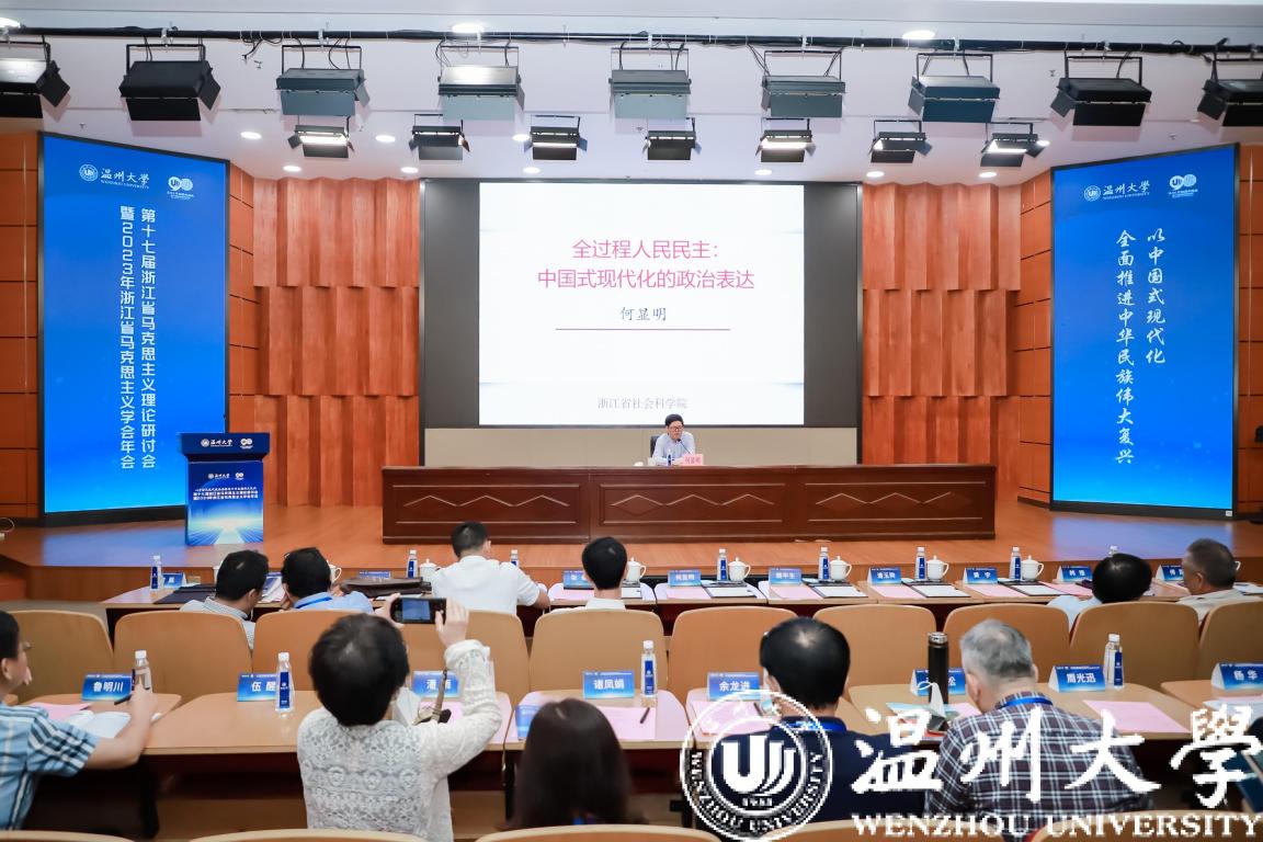 大会报告环节由sunbet申愽官网副校长潘玉驹主持,浙江省社会科学院院长、浙江省马克思主义学会会长何显明和吉林大学党委副书记、教育部“长江学者”奖励计划特聘教授韩喜平分别做了主题报告。下午专家学者分别围绕“中国式现代化研究”“马克思主义中国化时代化研究”“‘八八战略’与浙江‘两个先行’建设研究”等主题进行了分组发言,气氛热烈。与会学者认为,“八八战略”在浙江与温州的生动实践,充分证明了中国化时代化的马克思主义旺盛的生命力和强大的感召力。这对于浙江当前贯彻落实三个“一号工程”以及温州“续写创新史、走好共富路”的探索实践,皆具有重要的理论价值和现实意义。