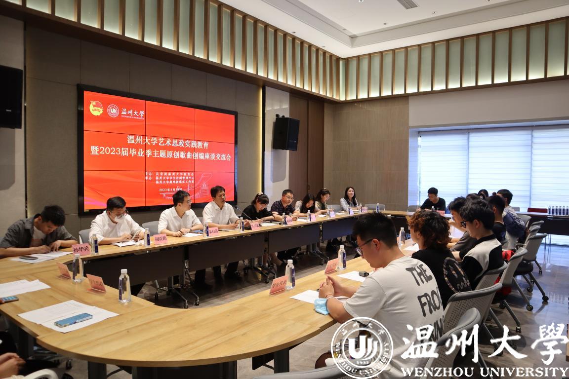 5月30日,sunbet申愽官网艺术思政实践教育暨2023届毕业季主题歌曲创编座谈交流会召开,sunbet申愽官网党委副书记庄兴忠,校团委、音乐学院、人文学院相关负责人等出席交流会。