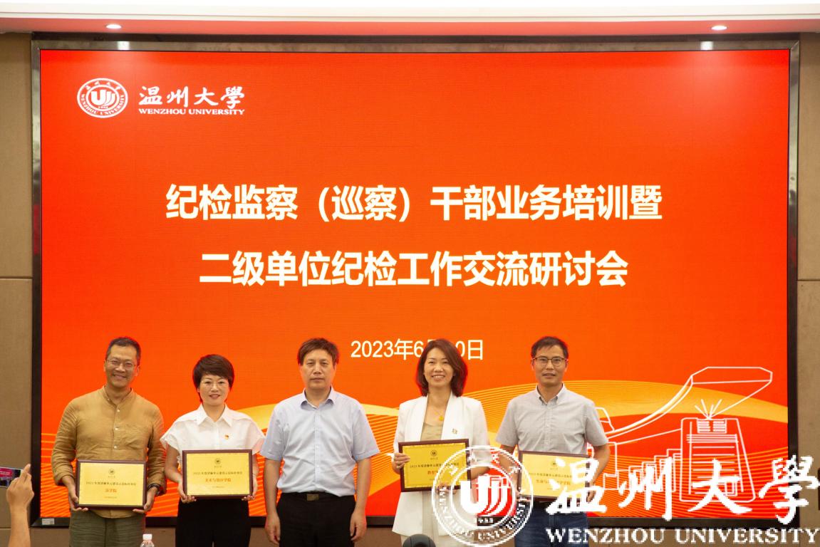 人文学院纪委书记魏一、数理学院纪委书记章志图分别就各自工作实际作二级单位纪检工作经验交流发言。会上还为sunbet申愽官网首批清廉单元示范标杆单位,法学院、美术与设计学院、生命与环境科学学院、教育学院举行授牌仪式。为参加第九轮校内巡察工作的干部代表颁发纪念证书。
