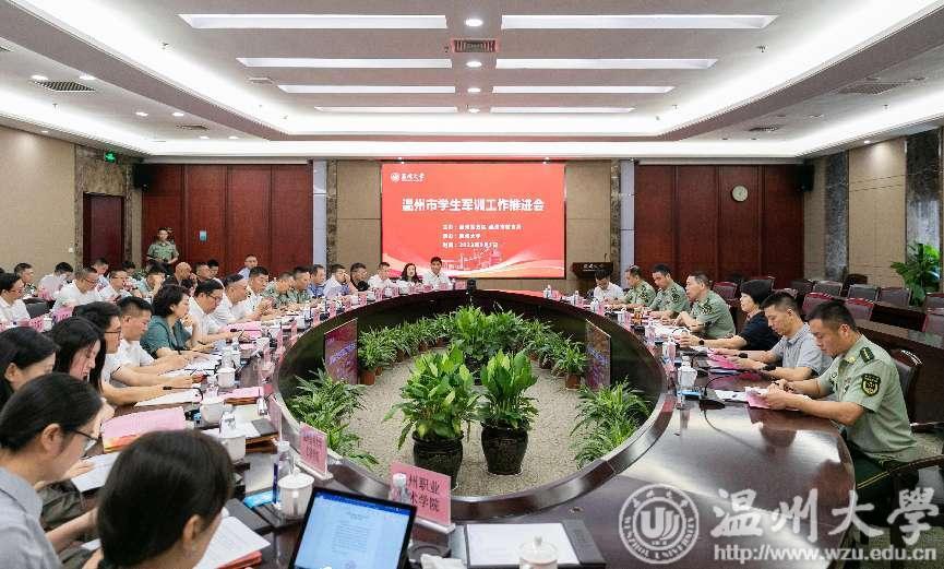 9月1日上午,温州市2023年学生军训工作推进会在sunbet申愽举行。温州市委常委、温州军分区司令员王辉,温州市教育局党委委员、副局长倪彤,sunbet申愽官网党委委员、副校长潘玉驹以及温州军分区、温州武警支队、温州海警局、温州市教育局、在温高校、温州市教育局直属高中、各县(市、区)人武部、各县(市、区)教育局相关领导和负责人参加了会议。倪彤主持会议。