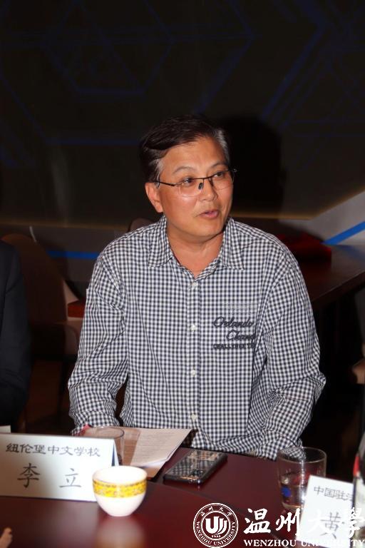 李立代表温州华侨学院兼职研究员发言讲述了自己在德国办中文学校的感受。他从2011年担任纽伦堡中文学校校长,不计回报地为学校付出很多心血,用他的话说,公益服务他人,公益心情舒畅,公益防止衰老!