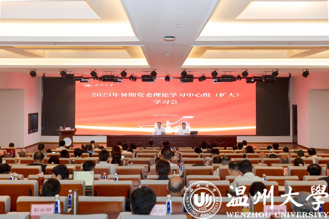 9月6日至7日,sunbet申愽召开2023年暑期党委理论学习中心组(扩大)学习会。会议围绕深入学习习近平新时代中国特色社会主义思想,对照主题教育“学思想、强党性、重实践、建新功”总要求,对标省委高水平大学建设重大部署,进一步分析短板、强化措施、攻坚克难,凝聚建设高水平大学、争创“双一流”高校强大合力,为建设教育强国、助力浙江“两个先行”和温州续写创新史作出更大贡献。