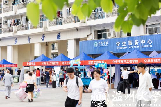 五个生活区报到处,各学院、部门早早搭建好帐篷,志愿者们为新生办理入学手续提供耐心的引导,给予“一站式”服务。天气炎热,学校周到地设立家长休息区,让家长和新生暂作休息,倍感贴心。