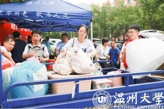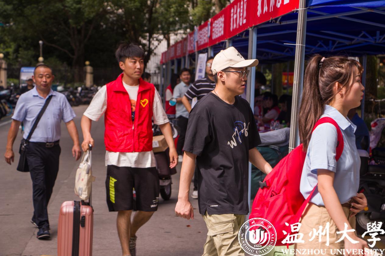 “红马甲”志愿者们热情地帮助新生们搬运行李,耐心引导他们进行入学登记,并介绍学校的学习生活经验,为新入校园的萌新们提供温馨服务;在校区与生活区之间,摆渡车来回“奔跑”,帮助新生们搬运行李。