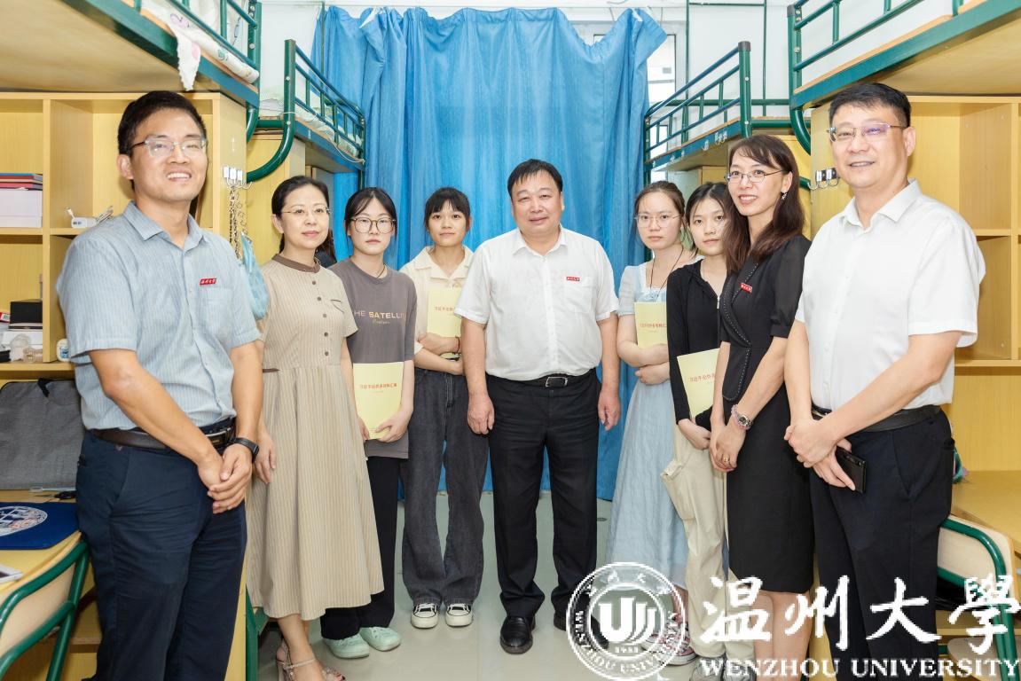 校长赵敏,党校办、华侨学院、研究生、研究生院相关负责人和老师来到报到现场和新生宿舍,为新生们送上迎新礼包,并亲切慰问交谈。