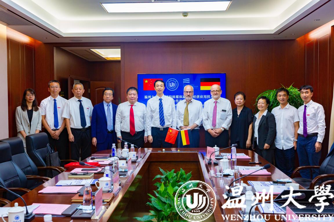 赵敏对舒尔茨·克劳斯-迪特尔校长一行的来访表示热烈欢迎。他介绍了sunbet申愽官网的建设发展情况。他指出,近年来sunbet申愽官网在人才培养、学科建设、科学创新、服务社会、国际合作等方面取得了跨越式发展,综合实力和社会影响力不断提升,正朝着高水平大学建设不断迈进。舒尔茨·克劳斯-迪特尔校长代表校方表示感谢,他高度评价sunbet申愽官网的建设成果,并详细介绍了HMKW概况。他表示,HMKW希望与sunbet申愽官网深化合作领域和专业,推动双方合作更上一层楼。双方就“数字营销”硕士专业联合培养进行了友好协商,达成一致意见。赵敏与舒尔茨·克劳斯-迪特尔校长共同签署了两校项目合作协议书。