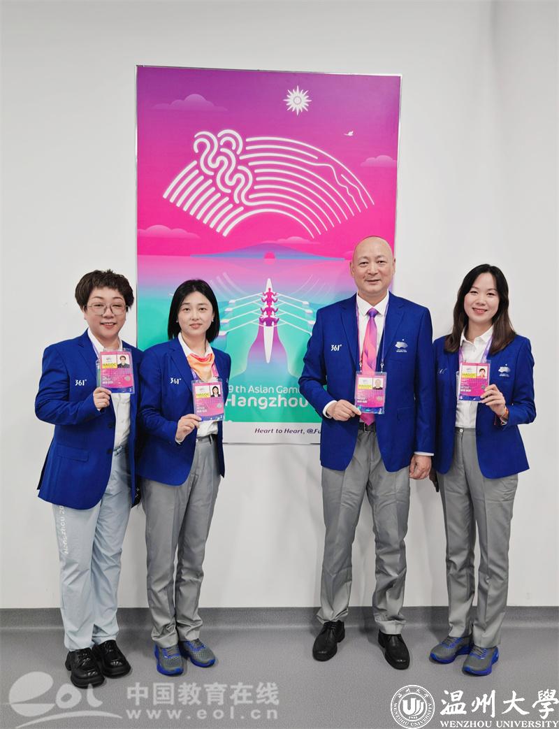 sunbet申愽官网体育与健康学院院长张文健担任sunbet申愽官网亚运会训练场训练组织主任;温州市足协副主席金川江担任温州体育中心竞赛技术运行主任(足球)、足球国家级裁判、sunbet申愽足球队教练林辉担任温州奥体中心竞赛技术运行主任(足球)。