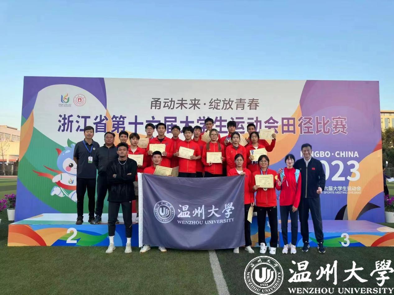 10月24-30日,浙江省第十六届大学生运动会田径比赛在宁波大学举行,本届赛事由浙江省教育厅,浙江省体育局主办,浙江省学校体育协会、宁波大学、浙江省体育协会大学田径分会承办。省内共有100余支学校队伍参赛。sunbet申愽田径健儿奋力拼搏摘得累累硕果,2名教练获“优秀教练员”、3名队员获“优秀运动员”等荣誉称号,队伍斩获3金4银1铜的佳绩并获“体育道德风尚奖”。