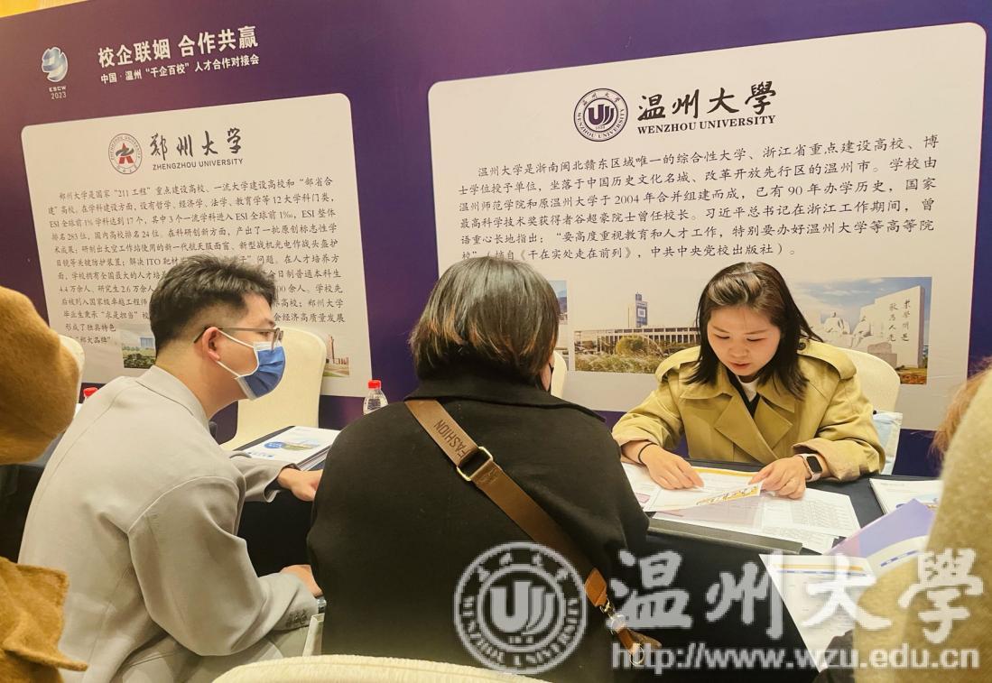 11月22日,由温州市人民政府主办,温州市委组织部、温州市人力资源和社会保障局承办的2023中国·温州“千企百校”人才合作对接会在温州香格里拉大酒店举行。副校长刘玉侠,招就处相关人员受邀参加,来自全国各地的120多所高校就业负责人和超1000家温州本土企业参会。