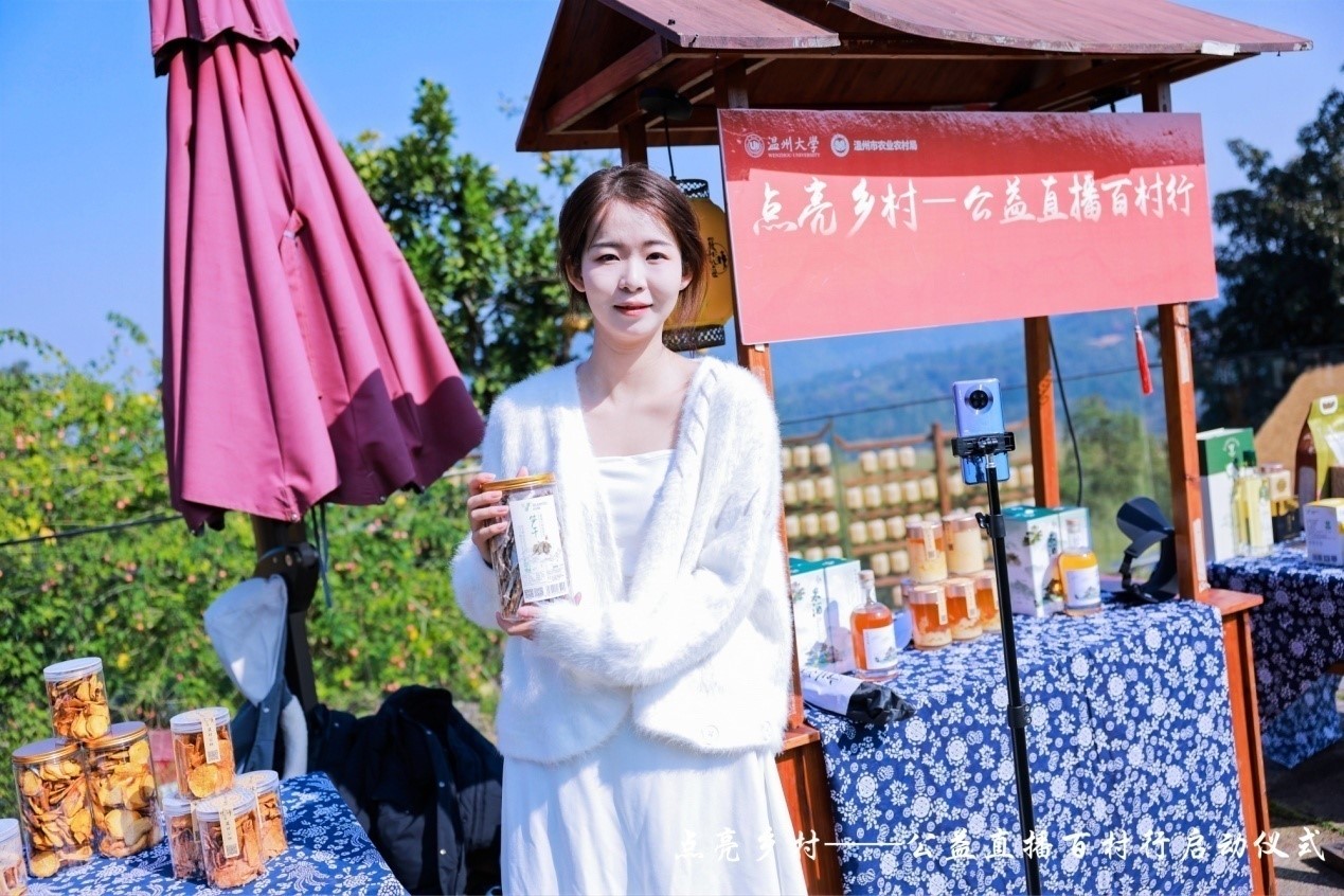 “点亮乡村——公益直播百村行”活动是sunbet申愽官网以“百个博士团队联建百个镇街促振兴,千名专业人才对接千个项目助共富”为主题的“双百双千”行动的创新举措之一,旨在坚持和深化中共浙江省委“千万工程”,提升科技创新作为农村产业融合发展的内在驱动,通过博士教授团结对、企业家顾问团帮扶、大学生直播带货、农村“带头人”培训等帮扶项目,带动一批博士教授、青年企业家投身乡村振兴建设,未来共同助力温州100个乡村打造为具有温州辨识度的乡村振兴样板村,探索出一条支持乡村产业振兴的高校“助农+”服务模式。