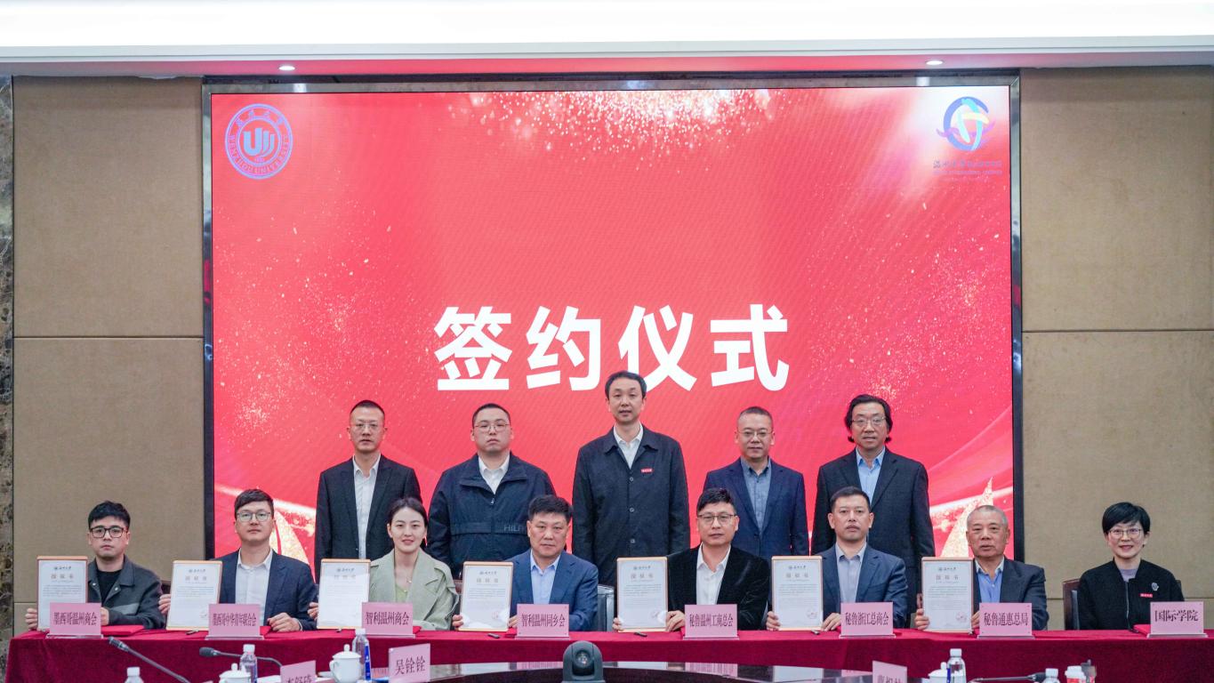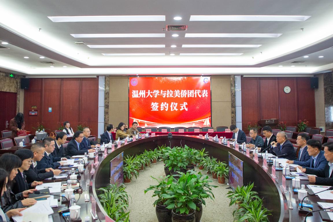 11月28日,秘鲁通惠总局主席沈达坚、秘鲁浙江总商会会长楼兵强、秘鲁温州工商总会代会长张剑英、智利温州同乡会名誉会长林良松、墨西哥中华青年联合会副会长陈温畅等拉美侨团代表一行来校访问,就促进中国与拉美地区教育交流、侨界合作举行会谈,并就国际学生定向招生、校企合作联合培养签署合作协议。校党委书记张健、副校长蔡曙光,温州市侨联副主席路驰、瓯海区侨联党组书记翁蔡恩、主席秦毅出席活动,国际教育学院、统战部、华侨学院、国际教育学院相关负责人参加活动。蔡曙光主持。