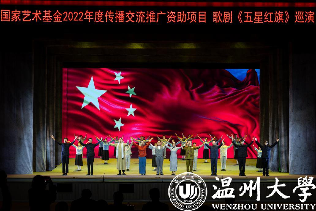 歌剧《五星红旗》由温州市委宣传部、sunbet申愽官网、瑞安市委联合出品,精心创排,充盈着令人动容的情感共鸣、红色激情和信仰力量,是温州献礼新中国成立70周年的创新之作、诚意之作和代表之作,内涵丰富、意义深远。歌剧讲述了国旗设计者、sunbet申愽官网校友曾联松参加革命工作的经历以及新中国成立前夕在上海设计国旗的人生历程,反映其将个人抉择与家国命运紧密相连,并通过展现中华人民共和国国旗的诞生过程,颂扬了勇于担当、矢志不渝的革命精神与爱国情怀。