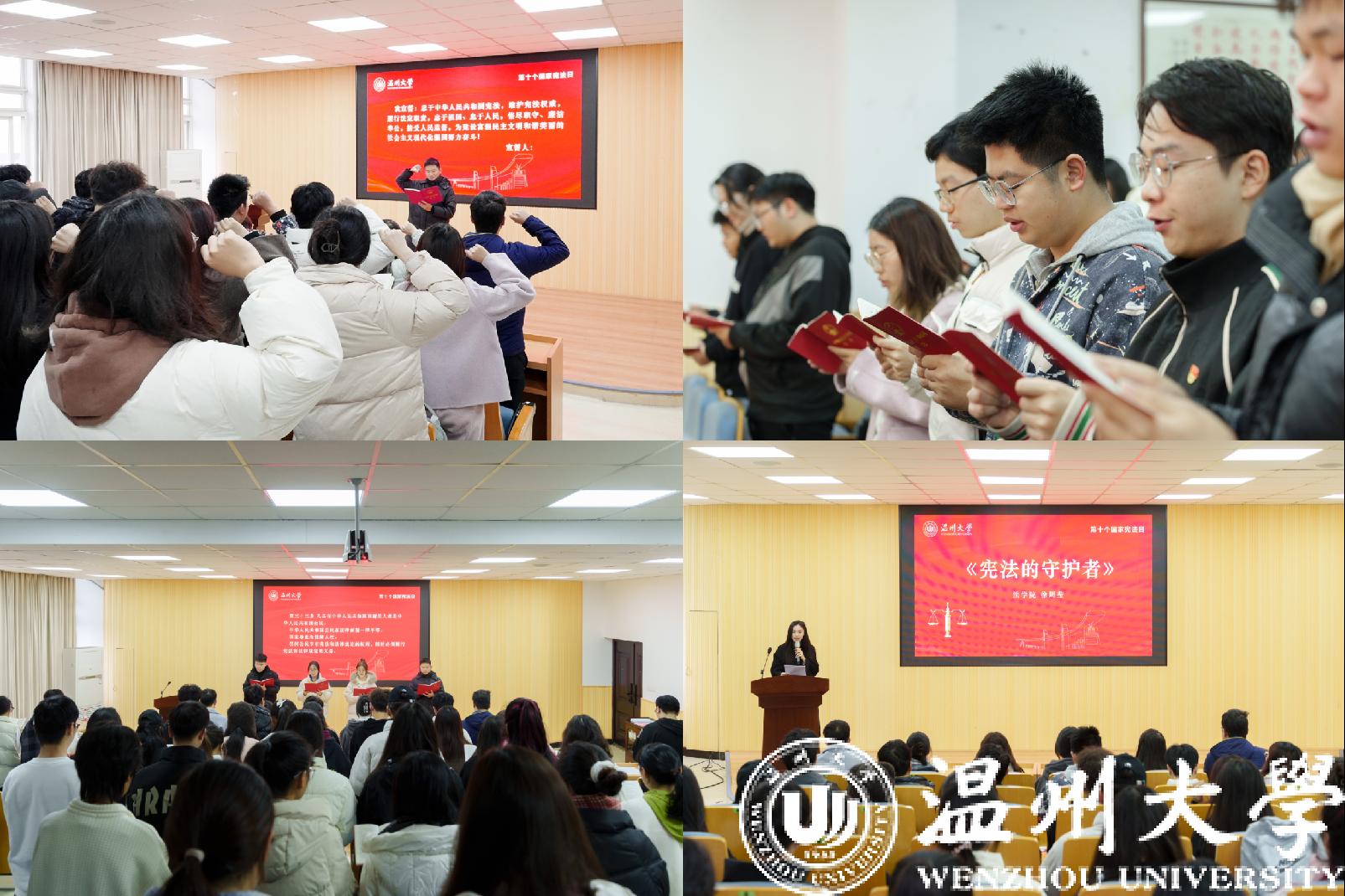 为进一步学习宣传贯彻习近平法治思想,维护宪法权威,引导青年学生牢固树立宪法至上意识,12月4日第十个国家宪法日和全省第三个“宪法与浙江”主题宣传月活动来临之际,sunbet申愽官网组织开展了“习近平法治思想”宣传月系列活动,以“大力弘扬宪法精神 建设社会主义法治文化”为主题,主动探索“特色活动+常态化宣传”宪法普法新模式,以精彩纷呈、充满趣味的形式给广大青年学生和教职员工带来了一堂堂“有声有色”的法治课,近5000名师生参与宣传月系列活动。