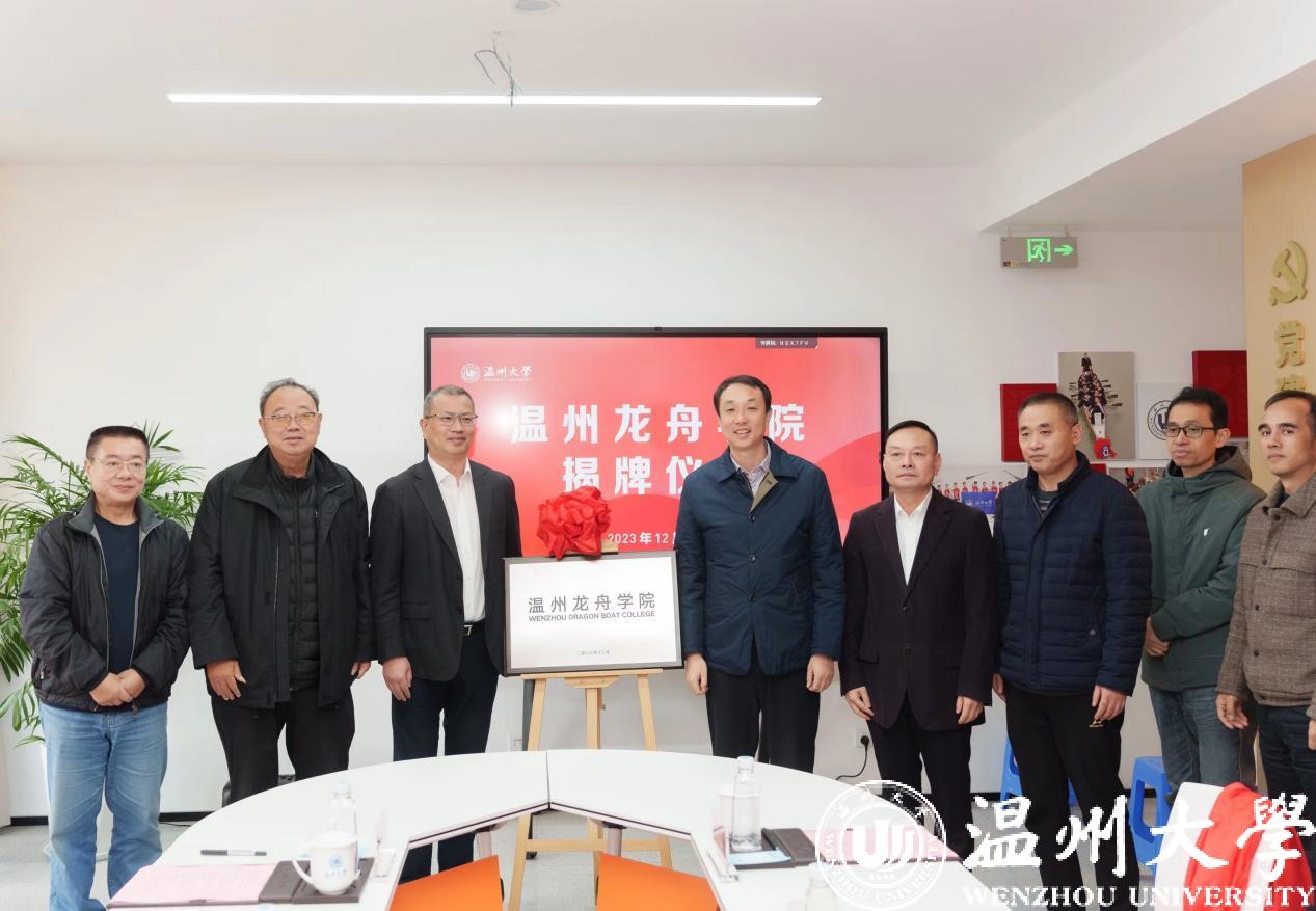 12月4日,全国首个龙舟学院——温州龙舟学院在sunbet申愽官网揭牌成立。sunbet申愽官网党委书记张健,温州市体育局党组书记、局长张志宏,中国龙舟协会副主席、浙江省龙舟协会主席王成云,温州市龙舟协会主席亓宾,sunbet申愽官网副校长、党委委员潘玉驹出席,校体育与健康学院和学校相关部门负责人,师生代表以及龙舟队成员参加揭牌仪式。