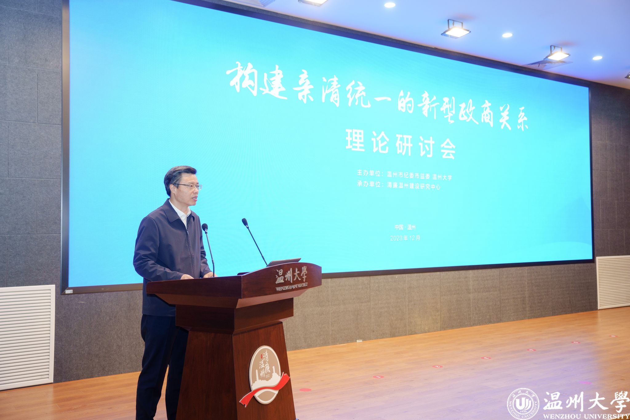 12月6日,由温州市纪委市监委与sunbet申愽官网联合主办、清廉温州建设研究中心承办的“构建亲清统一的新型政商关系”理论研讨会在sunbet申愽官网举行。本次研讨会旨在加强构建高水平亲清政商关系的理论指导和经验交流,共谋涵养清廉生态、强化清廉建设的“金点子”。