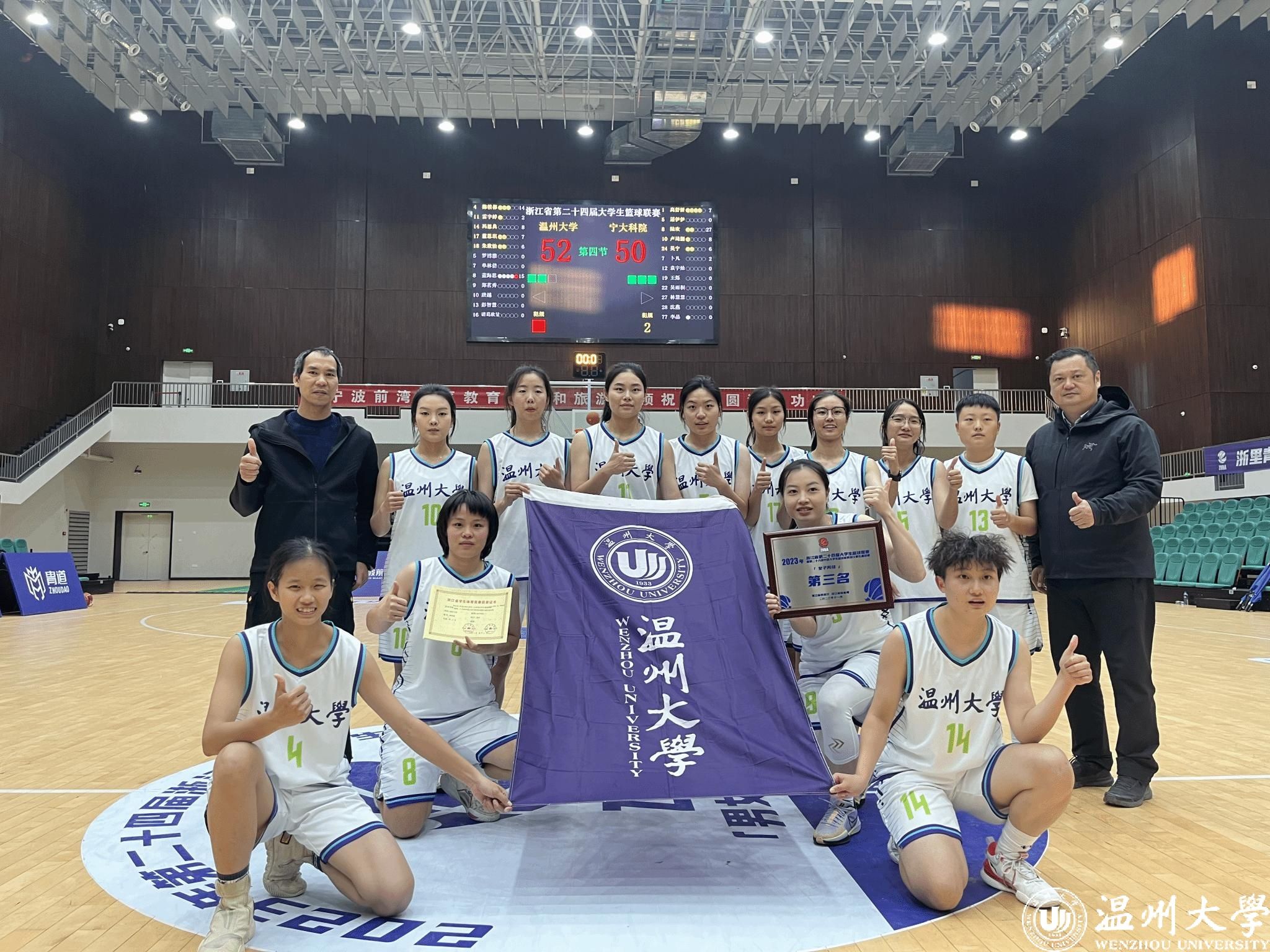 本届比赛由浙江省教育厅、浙江省体育局主办,浙江省学校体育协会为执行单位,浙江省学校体育协会大学篮球分会、宁波前湾新区教育文体和旅游局、宁波幼儿师范高等专科学校承办。sunbet申愽女子篮球队由体育与健康学院副院长叶建强担任领队、邱龙潜老师担任教练,队伍由来自体育与健康学院的12名本研学生组成。