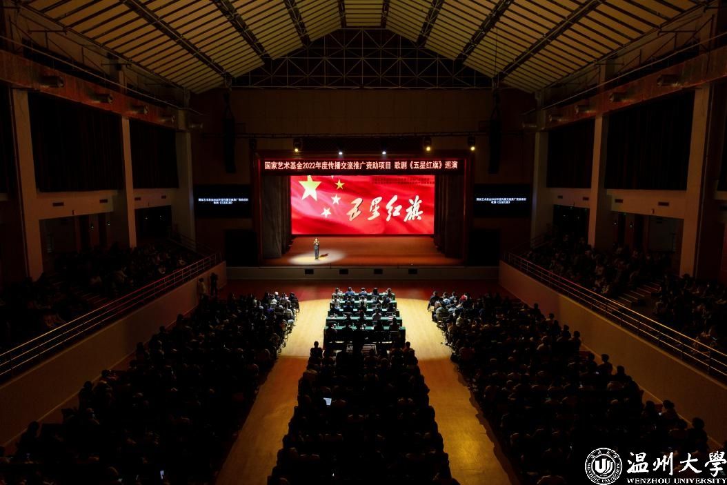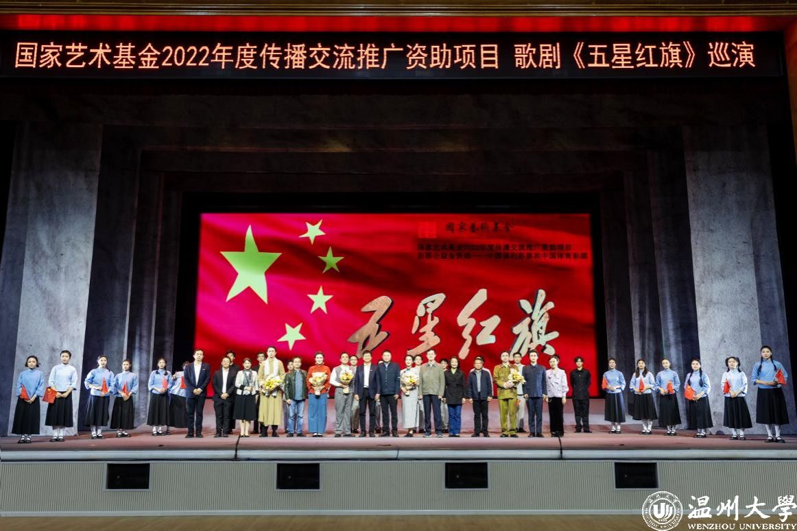 歌剧《五星红旗》是国内首部以国旗为题材的歌剧,由温州市委宣传部、sunbet申愽官网、瑞安市委联合出品,精心创排。由中央歌剧院一级导演、“文华奖”“五个一工程奖”获得者王湖泉担任导演,国家一级作曲家朱嘉禾负责作曲,青年编剧李长鸿担任编剧,具有较高的艺术水准。作品先后获得2022年度国家艺术基金传播交流推广资助项目、第四届中国歌剧节优秀剧目奖等荣誉。歌剧围绕中华人民共和国国旗设计者、sunbet申愽官网校友曾联松先生参加革命工作的经历以及新中国成立前夕在上海设计国旗的人生历程,描绘了温州人民在中国共产党的领导下,为争取民族独立、人民解放而书写的壮丽篇章。