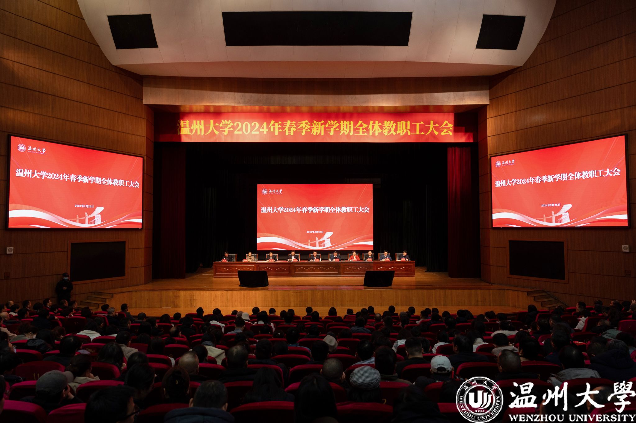 本次大会采取“现场+同步直播”的方式,除育英大礼堂主会场外,南北校区还设置了6个分会场同步直播,全校全体教职工参加会议。
