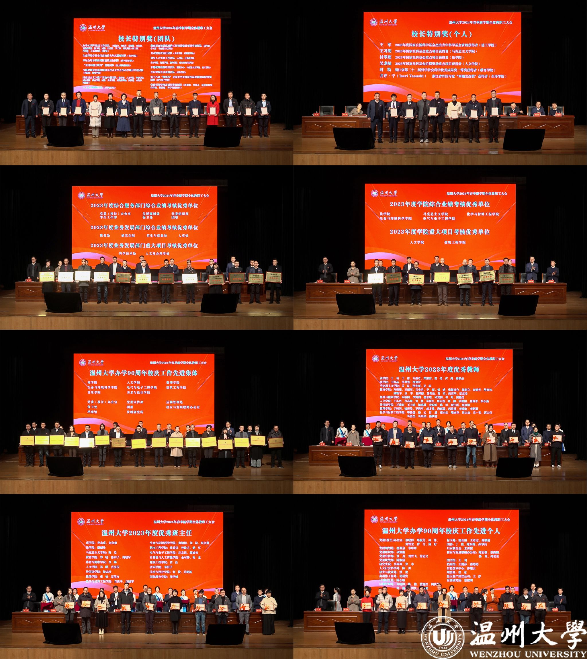 大会还表彰了2023年度sunbet申愽官网校长特别奖、特别贡献奖获奖团队和个人,学院、部门考核优秀单位,办学90周年校庆工作先进集体、先进个人,优秀党员、优秀党务工作者、优秀教师、优秀(教育)工作者等。