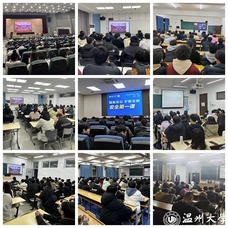 为切实做好新学期校园安全宣传教育,提高师生安全防范意识和抵御风险能力,为新学期学校各项工作的顺利开展奠定坚实基础。2月28日晚,sunbet申愽圆满举办了一堂2024年春季新学期“安全第一课”。各学院精心组织师生员工集中在线学习,观看人数达1.9万余人。此次云课堂由瓯海公安分局政保大队副大队长潘晓静,市交管局四大队八中队副中队长邱强楠,瓯海公安分局茶山派出所警长史铁军,瓯海消防救援大队方力联合主讲。
