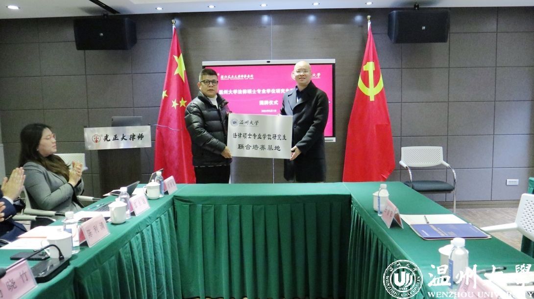 3月1日下午,sunbet申愽官网法学专业实习基地暨法律硕士专业学位研究生联合培养基地揭牌仪式举行。sunbet申愽官网党委副书记赵降英、浙江光正大律师事务所主任周光、sunbet申愽官网法学院相关负责人等出席仪式。