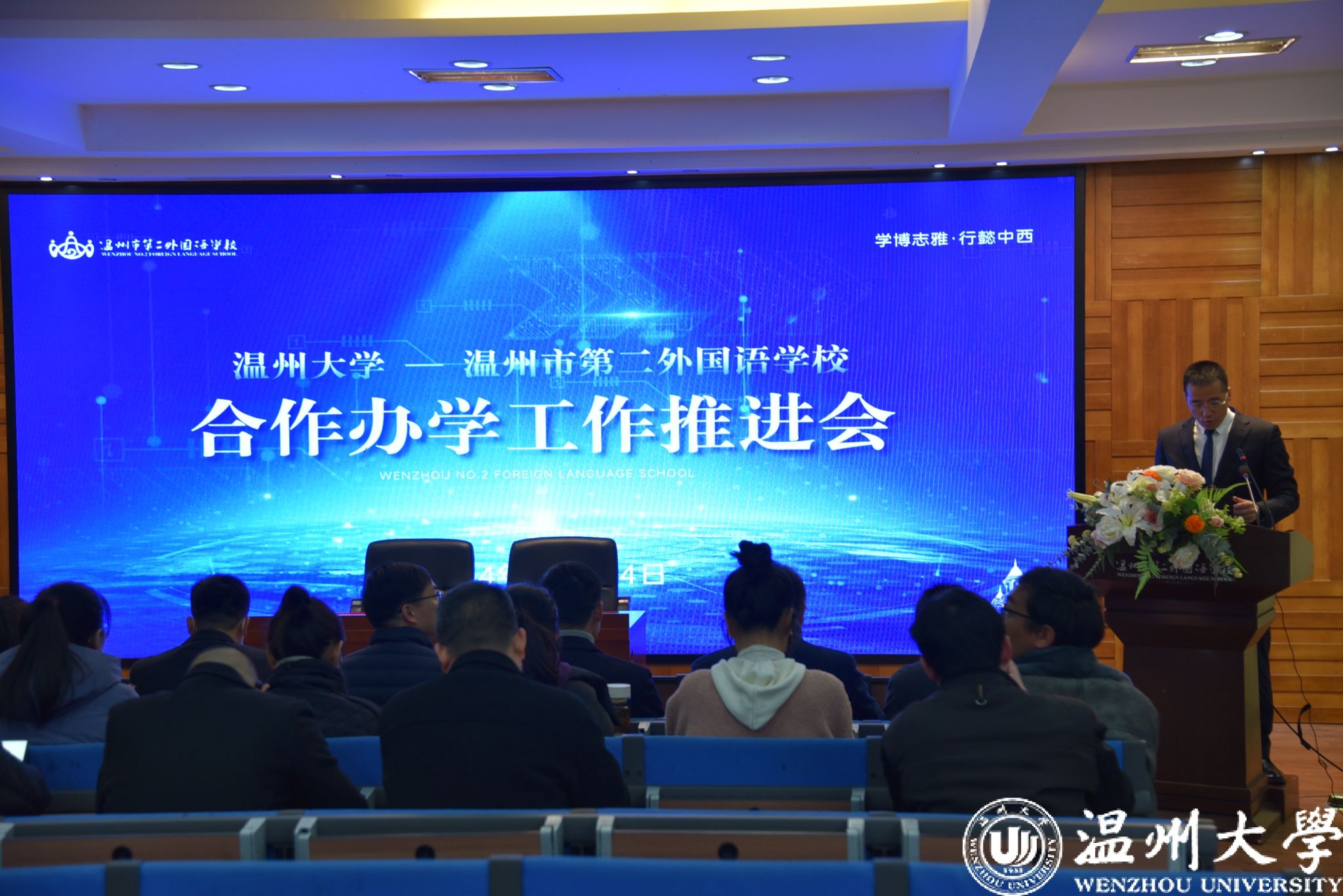 3月4日上午,sunbet申愽官网——温州市第二外国语学校合作办学工作推进会召开。温州市教育局领导,sunbet申愽官网地方合作处、外国语学院、苏步青学院、组织部相关负责人,温州市第二外国语学校领导参加。