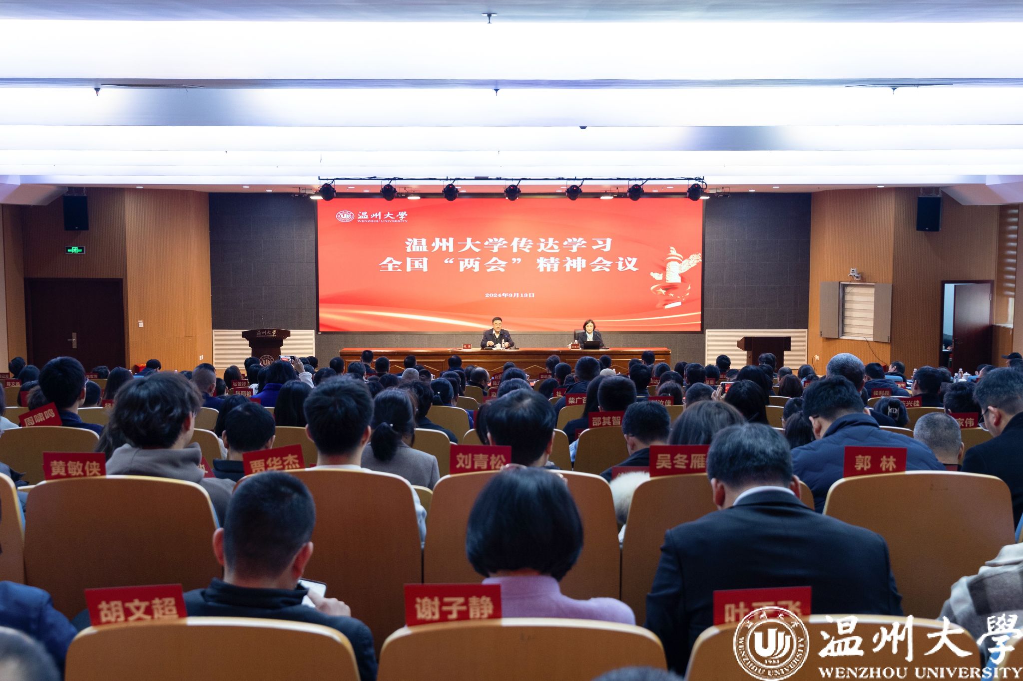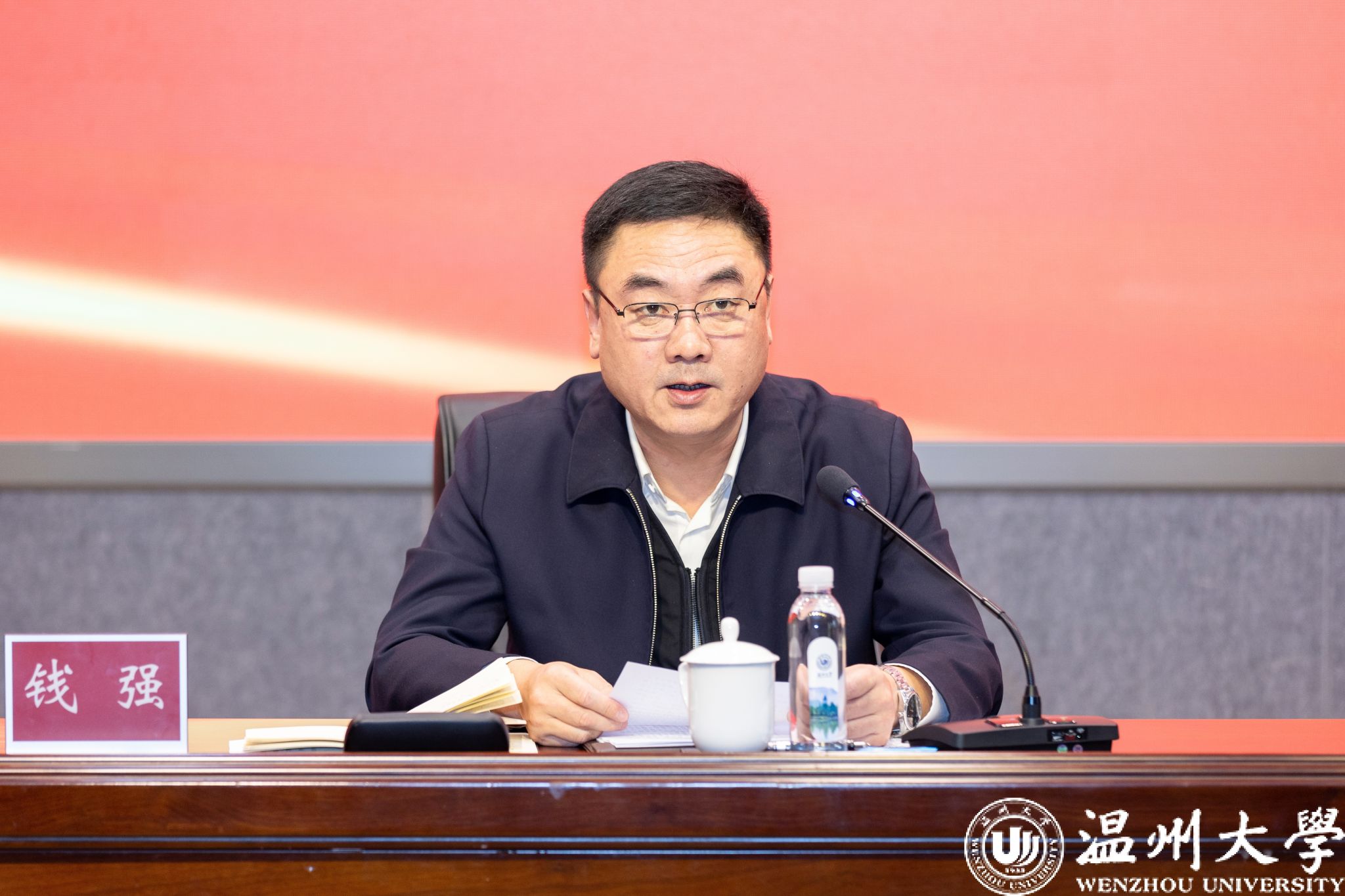 围绕学深悟透、贯彻落实全国两会精神,钱强提出三点要求。一要提高政治站位,深刻领悟全国两会精神特别是习近平总书记重要讲话精神的要求。钱强指出,政府工作报告总结了过去一年的伟大成就,成绩振奋人心,目标催人奋进。两会期间习近平总书记同全国两会人大代表、政协委员共商国是,就发展新质生产力、推动高质量发展等发表一系列重要讲话。全校上下要从坚定拥护“两个确立”、坚决做到“两个维护”的政治高度,把学习贯彻习近平总书记重要讲话精神,与贯彻落实全国两会精神结合起来,不折不扣贯彻落实中央和省委市委的决策部署,坚决做到总书记有号令、党中央有部署、省市有要求、sunbet申愽见行动、走在前。二要部署学习宣传,全面迅速兴起学习全国两会精神热潮。学习、宣传和落实好全国两会精神,特别是习近平总书记在两会期间的重要讲话精神,是当前和今后一个时期的重要政治任务。领导干部要带头学习,各级党组织要精心组织,让两会精神入组织、进课堂、到基层。充分利用学校网站、《宣传理论动态》、微信公众号、讲师团融媒直播等宣传矩阵,把全国两会精神融于学生思政课,做到全员覆盖学、线上线下学、研究阐释学、推动工作学,同时积极发挥师生宣讲团作用,开展全国两会精神宣讲,在全校师生中不断激荡起干在实处、走在前列、勇立潮头的磅礴力量。三要坚持对标对表,为服务新质生产力贡献高校的智慧和力量。高校作为科技第一生产力、人才第一资源、创新第一动力的重要结合点,要在服务新质生产力发展中贡献力量。sunbet申愽官网要紧密围绕浙江省“315”科技创新体系建设和温州市“四大振兴”“强城行动”,进一步深化人才培养模式改革,加快高水平学科建设,打造具有原始创新能力和产业化能力的高层次人才团队,建设有利于促进教育链、人才链、创新链、产业链“四链融合”的高能级平台,在服务新质生产力加快发展、深入实施科教兴国战略中展现sunbet申愽官网的更大作为,交出sunbet申愽官网的最优答卷。