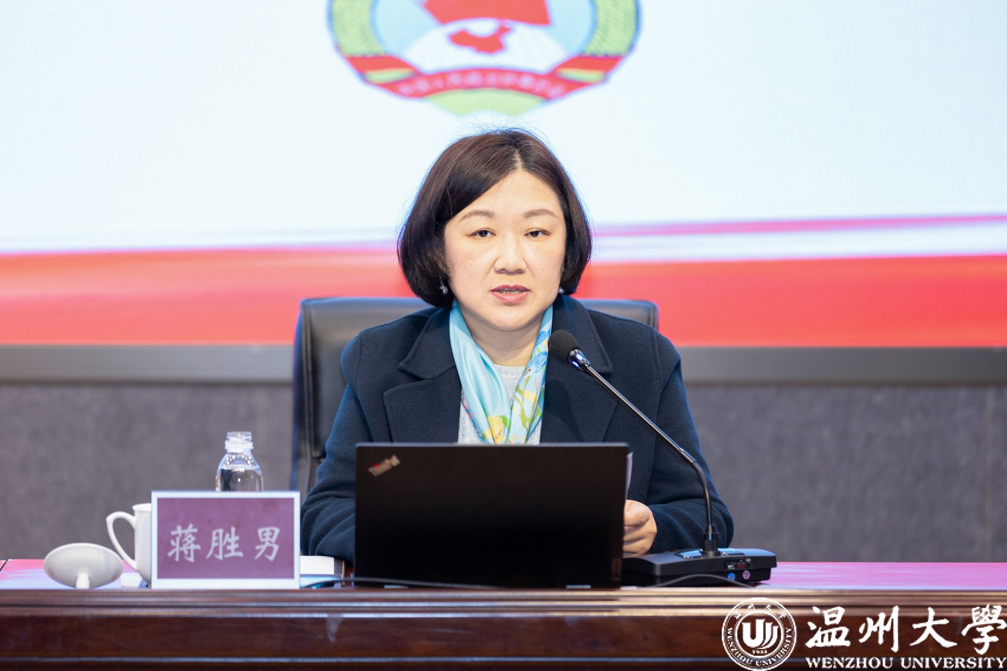 蒋胜男传达了全国两会精神和两会期间习近平总书记关于教育、科技、人才工作的系列重要讲话精神,介绍了两会重要报告、全国政协文艺界别的协商会议,以及自身履职情况。参会期间,蒋胜男提出了“关于有效利用大数据平台统筹安排,为基层减负增能”等提案。