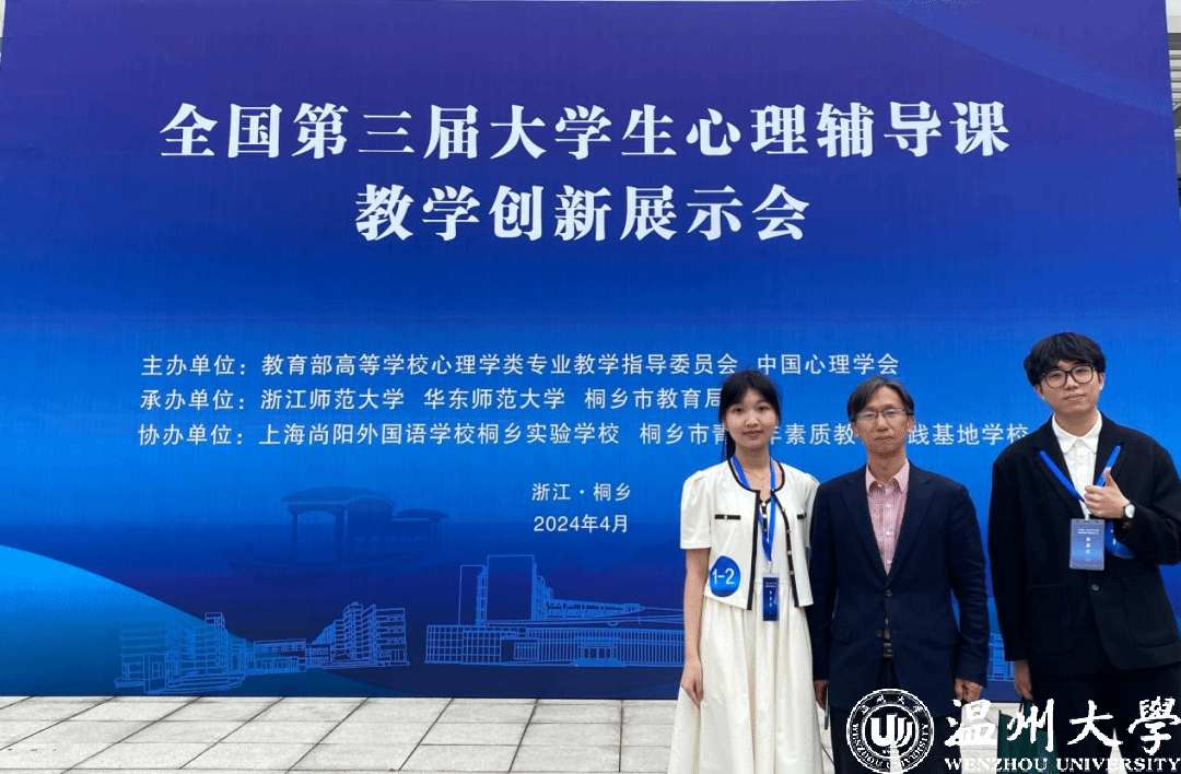 近日,全国第三届大学生心理辅导课教学创新展示会在浙江桐乡举办。展示会由教育部高等学校心理学类专业教学指导委员会、中国心理学会主办,浙江师范大学、华东师范大学、桐乡市教育局联合承办。sunbet申愽教育学院心理学系盛建森老师指导的20级应用心理学李玉婷同学与21级应用心理学张明秀同学,经过三轮竞争,双双荣获特等奖,并均为决赛小组第一名。