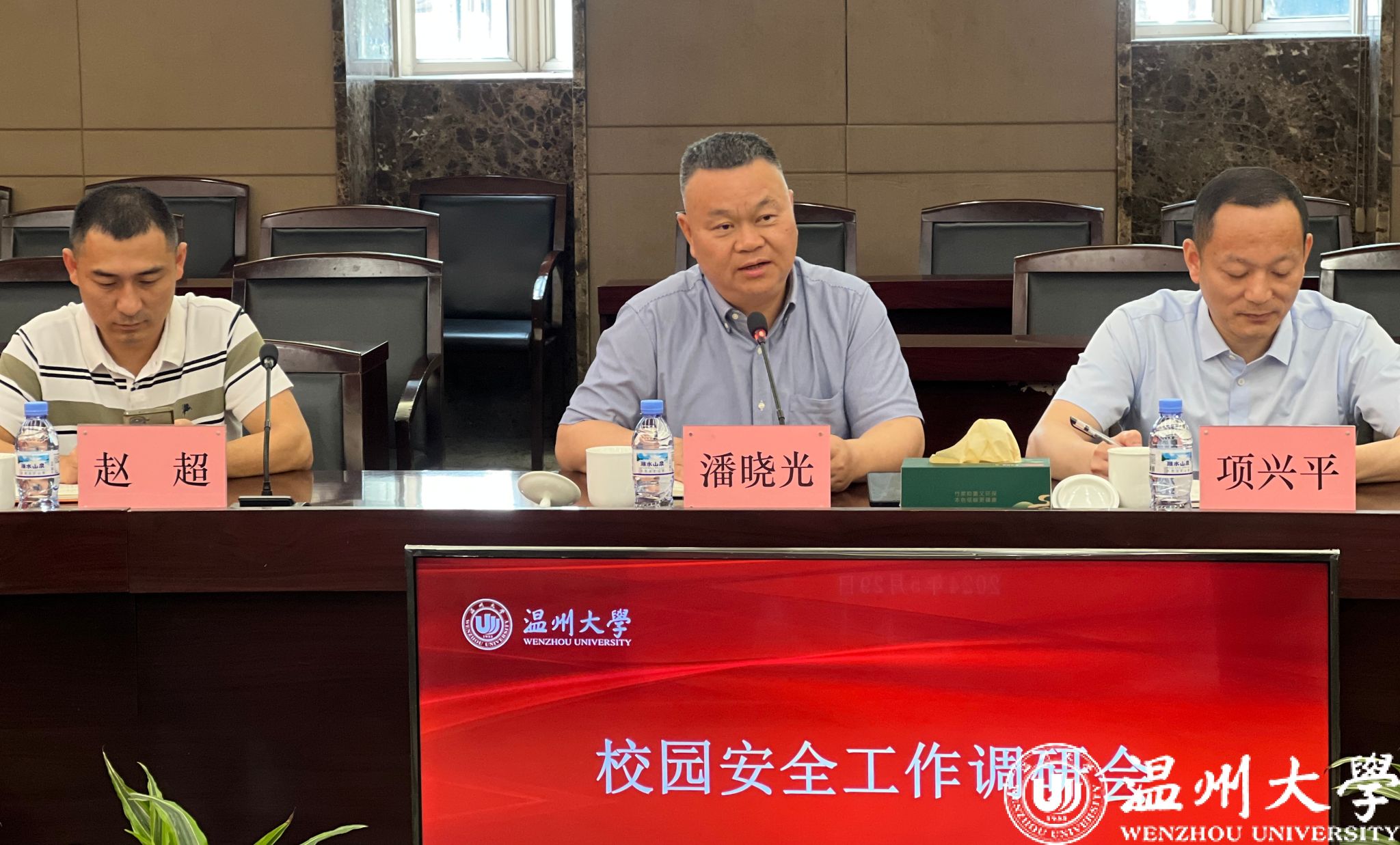 5月29日上午,温州市平安督导组第6组组长、市政协教科卫体委副主任潘晓光一行来校开展校园安全调研检查工作。校党委副书记庄兴忠出席会议并讲话,瓯海区政法委、茶山街道、高教园区派出所、sunbet申愽相关部门负责人等参会。