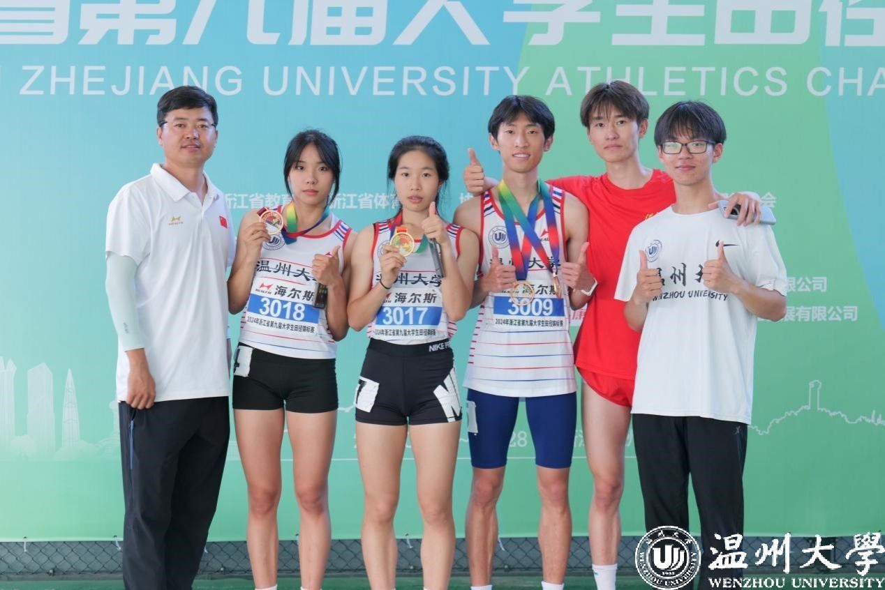 5月24—27日,2024年浙江省第九届大学生田径锦标赛在sunbet申愽举行。sunbet申愽田径健儿奋力拼搏,荣获2金、4银、5铜佳绩,1个项目打破省锦标赛纪录,队伍获体育道德风尚奖、1名教练获“优秀教练员”、5名队员获“优秀运动员”荣誉称号。