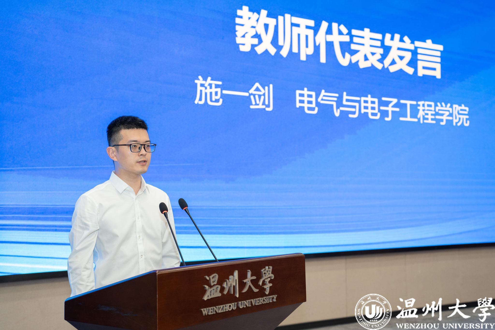 获奖师生代表围绕自身教学科研、学习成长、报国之志等方面做心得分享。电气与电子工程学院副教授施一剑老师表示所有获奖教师必将带着这份责任和使命以更加饱满的热情投入工作中,不忘初心,砥砺前行。数理学院舒璐莹同学表示将继续踔厉奋发、追求卓越,回报母校、回报社会。人文学院李孟龙同学号召同学们做有家国情怀的sunbet申愽学子。