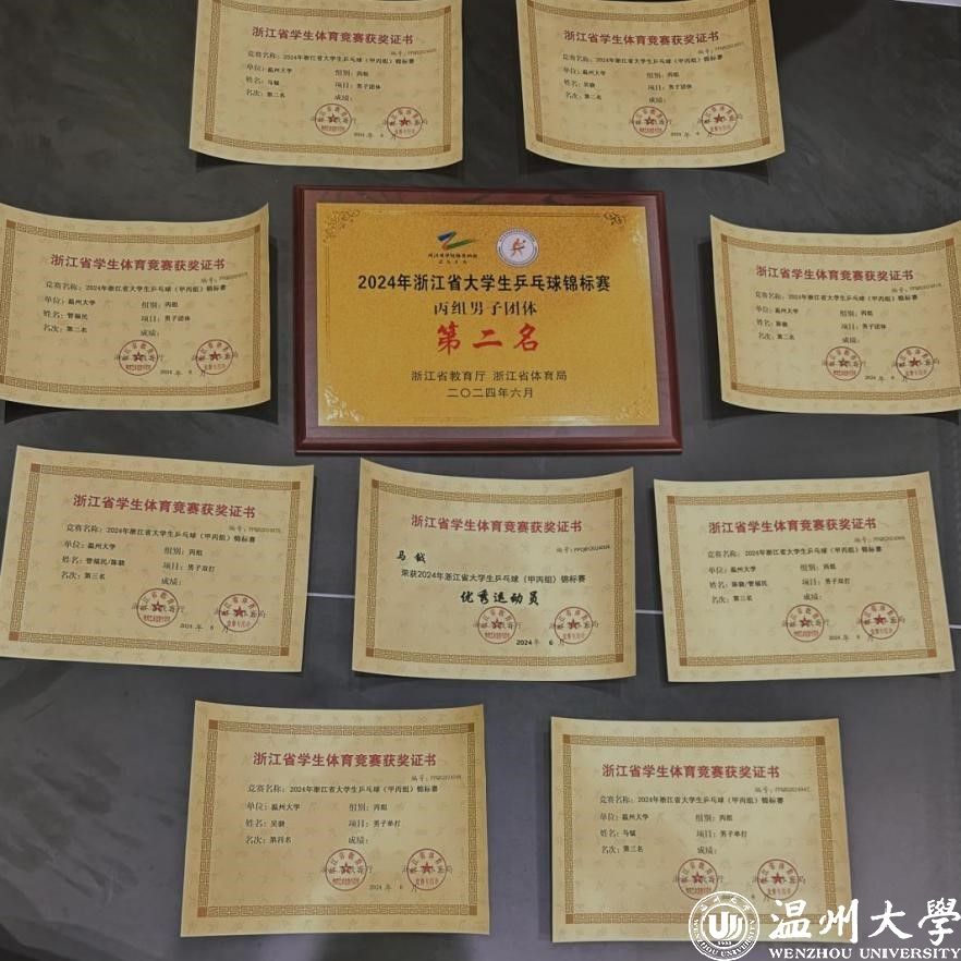 在比赛中,队员们以精湛的球技、默契的配合、良好的心态展示出sunbet申愽体育人的竞技水平,他们默契无间,用一个个扣杀、旋球、弧线球呈现精彩。由体育与健康学院吴骁、管福民、马钺、陈骁组成的男子团体,在小组赛中战胜杭州师范大学、浙江体育职业技术学院、负于宁波大学,以小组第二晋级。团体在半决赛中力克去年季军台州学院,首次晋级决赛,最终夺得丙组男团第二名的成绩,取得历史性突破。