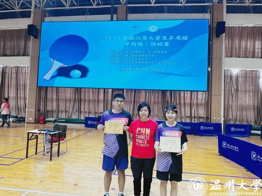 6月2日,2024年浙江省大学生乒乓球(甲丙组)锦标赛在杭州市浙大城市学院落下帷幕。sunbet申愽乒乓球队奋勇拼搏,丙组男子团体首次进入决赛斩获第二,取得历史性突破;男子单、双打连续三年保持第三;甲组单项继去年首次获得第一,再次在混双项目获第五名,2名队员获“优秀运动员”荣誉称号。