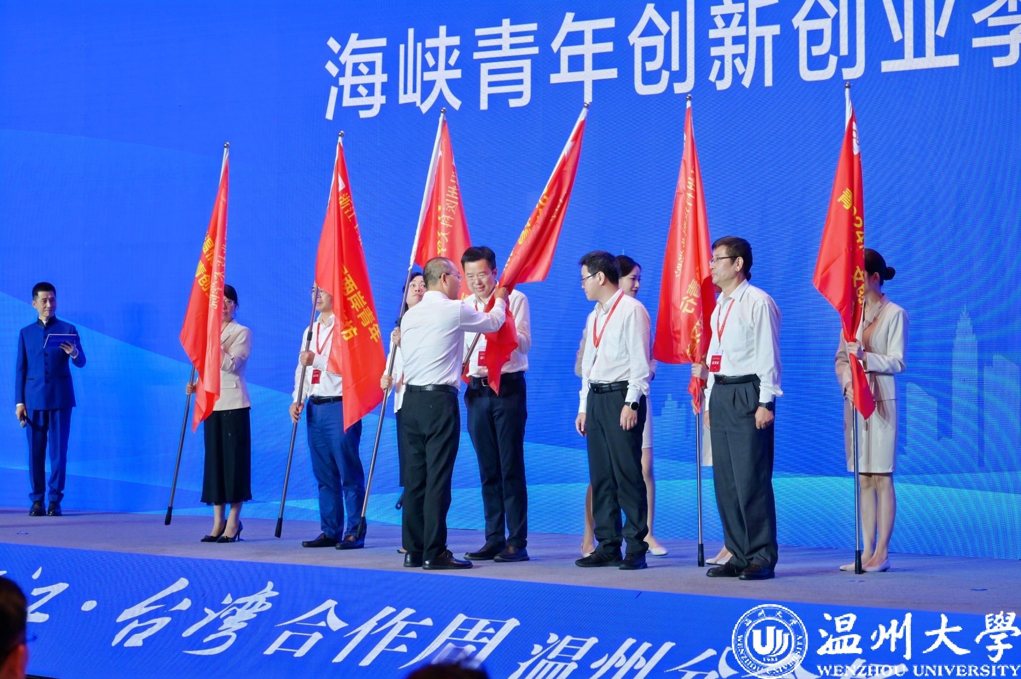 海峡两岸(温州)大健康产业对接会上,举办了“筑梦温州”海峡青年创新创业季启动仪式。温州市副市长陈宽为在温高校代表授“2024海峡两岸青年“瓯·文创之旅”暑期研学营”营旗。sunbet申愽作为在温高校代表之一,由副校长王尧骏接旗。
